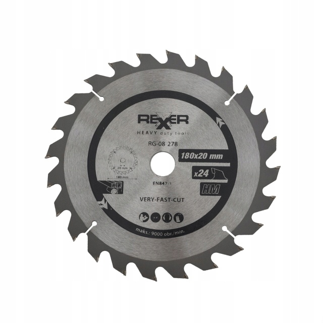Piła Tarczowa HM 180×20 mm 24 Zębów REXXER VERY-FAST-CUT do Drewna