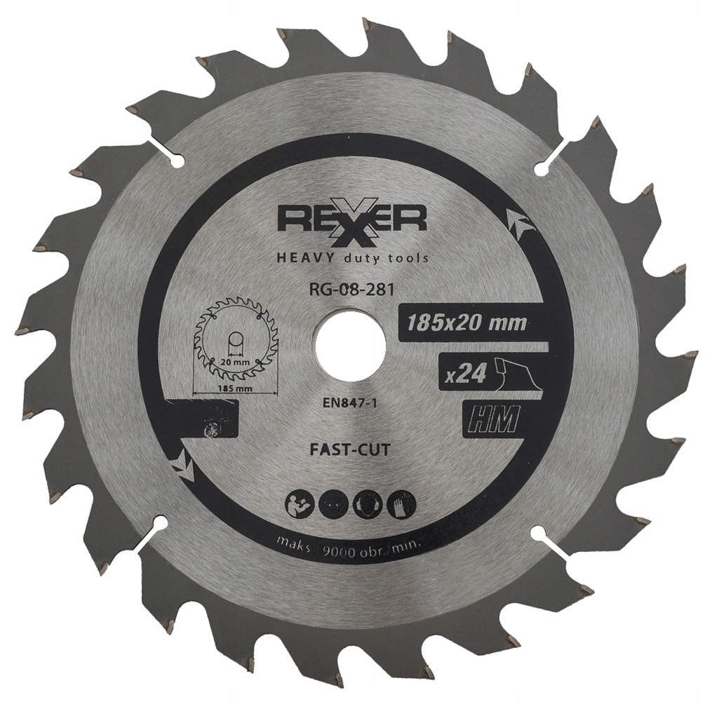 Piła Tarczowa HM 185×20 mm 24 Zębów REXXER FAST-CUT do Drewna