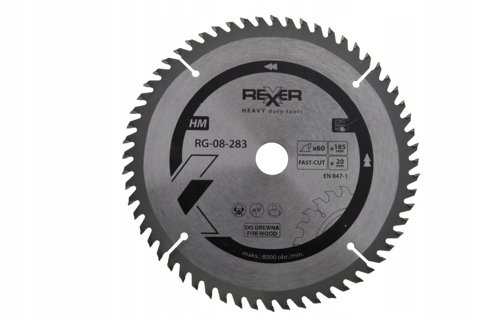 Wysokiej jakości piła tarczowa HM marki REXXER o średnicy 185 mm i otworze 20 mm z 60 zębami z węglikami spiekanymi. Idealna do cięcia drewna, drewna świeżego, płyt wiórowych i innych materiałów.