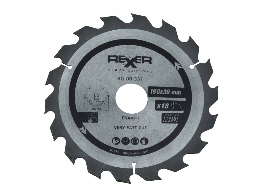 Piła Tarczowa HM 190×30 mm 18 Zębów REXXER VERY-FAST-CUT do Drewna