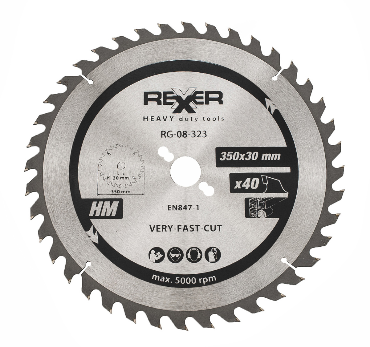 Wysokiej jakości piła tarczowa HM marki REXXER o średnicy 350 mm i otworze 30 mm z 40 zębami z węglikami spiekanymi. Zaprojektowana do szybkiego i precyzyjnego cięcia drewna twardego, miękkiego, płyt prasowanych, laminowanych, sklejek, płyt wiórowych oraz MDF. Idealna do zastosowań budowlanych i wszechstronnych.