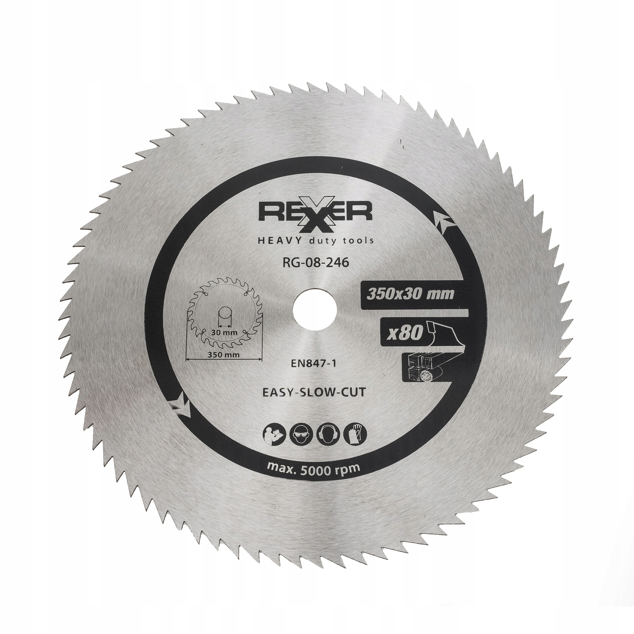 Piła Tarczowa HM 350×30 mm 80 Zębów REXXER EASY-SLOW-CUT do Drewna + 3 Pierścienie Redukcyjne