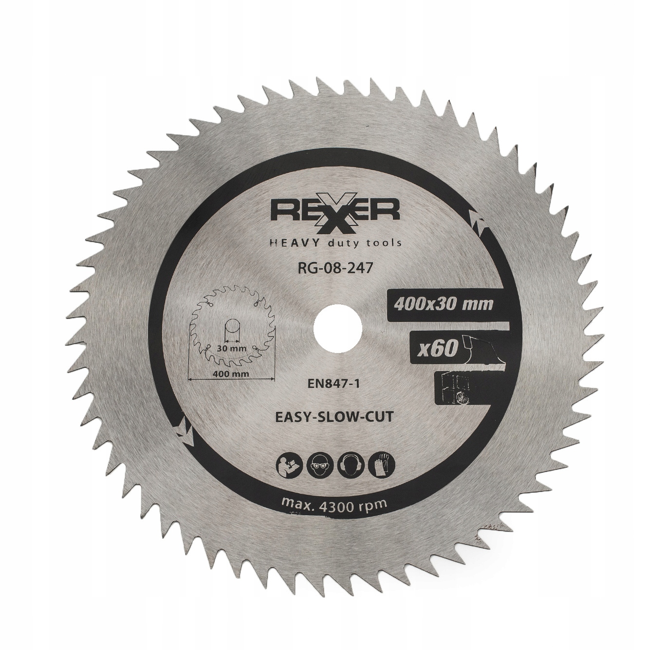 Piła Tarczowa HM 400×30 mm 60 Zębów REXXER EASY-SLOW-CUT do Drewna + Pierścień Redukcyjny