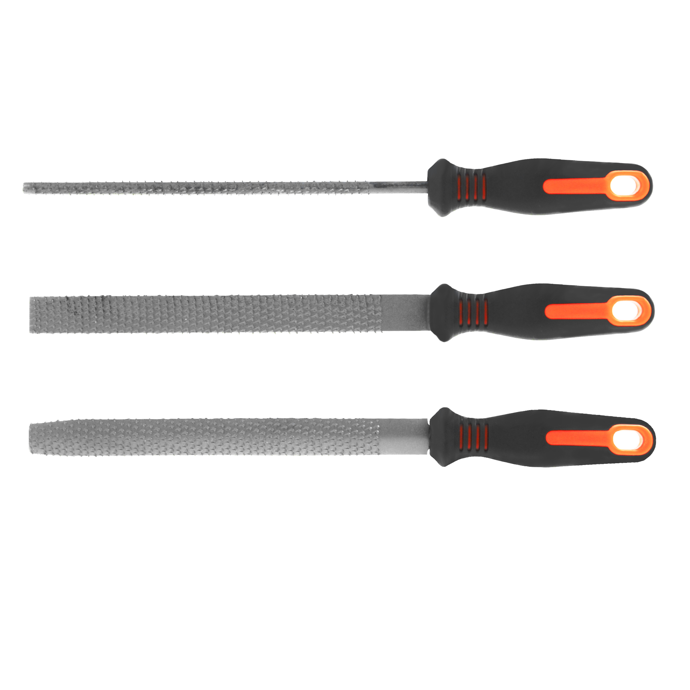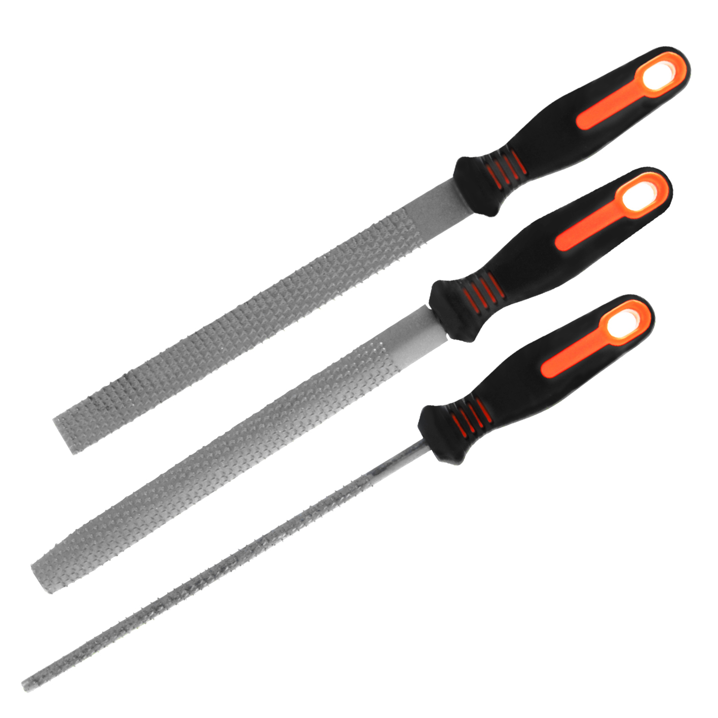 Zestaw trzech niezastąpionych pilników do drewna, które zapewnią precyzję i wygodę podczas pracy. W skład zestawu wchodzą: pilnik płaski do równego wygładzania powierzchni, pilnik półokrągły idealny do pracy w rowkach i wgłębieniach, oraz pilnik okrągły, który świetnie sprawdzi się przy formowaniu łuków i zaokrągleń.