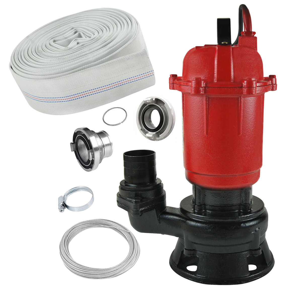 Pompa jest całkowicie zatapialna i wyposażona w mocny silnik jednofazowy z zabezpieczeniem przed przeciążeniem i przegrzaniem. Żeliwna obudowa zapewnia trwałość i odporność na trudne warunki pracy. Urządzenie osiąga wydajność do 14 000 l/h i posiada przewód zasilający o długości 10 metrów oraz wąż strażacki 30 m, co pozwala na dużą elastyczność użytkowania.