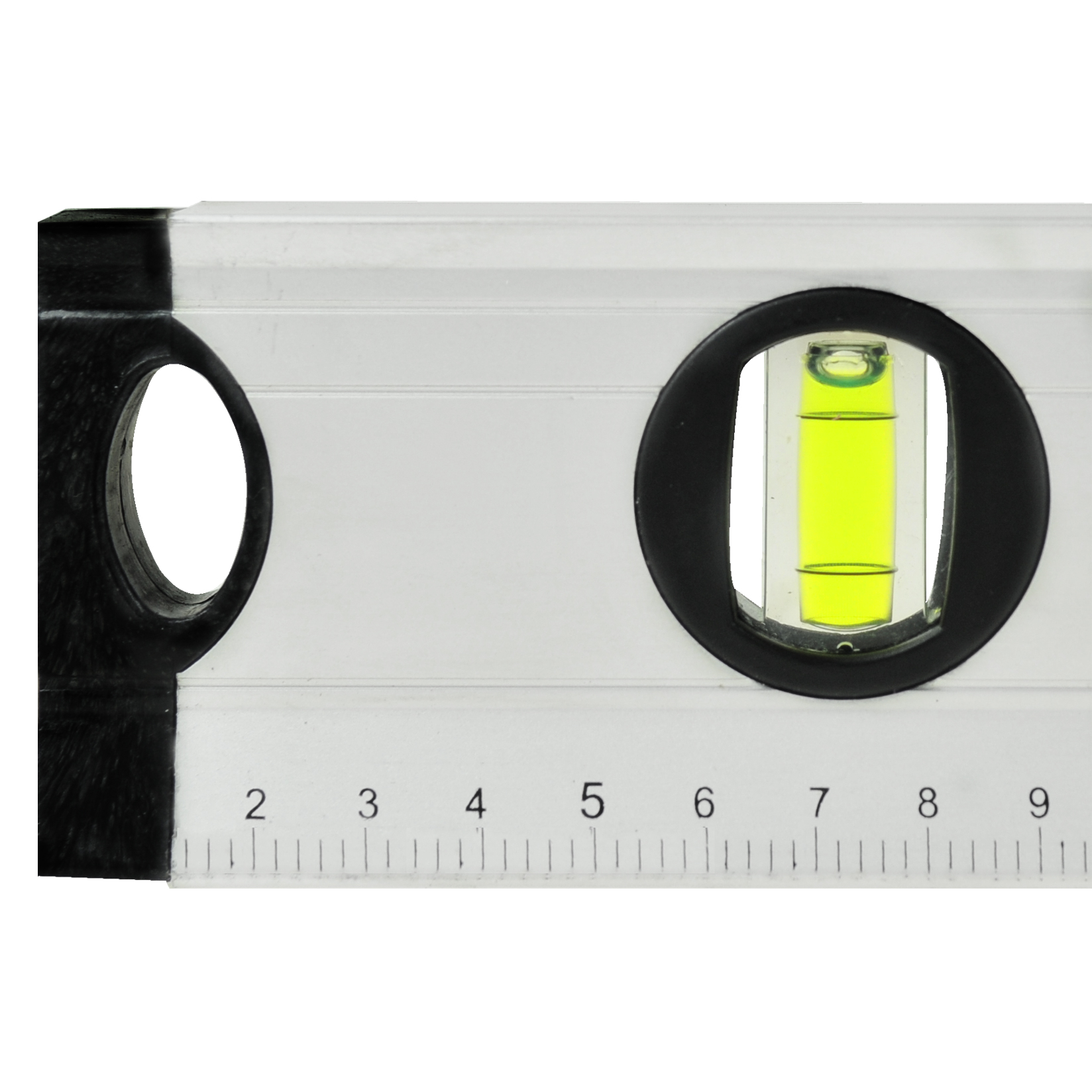Poziomnica aluminiowa specjalna pro to narzędzie pomiarowe używane głównie w budownictwie, pracach remontowych oraz w stolarstwie do sprawdzania poziomu i pionu powierzchni oraz elementów konstrukcyjnych. Jest to prosty, ale niezwykle precyzyjny instrument, który pozwala na dokładne ustawienie obiektów w poziomie (poziom) oraz pionie (pion). Poziomnica wykonana jest z aluminium. Aluminium jest lekkie, co ułatwia transport i obsługę, a jednocześnie wystarczająco wytrzymałe, aby zapewnić trwałość narzędzia. Poziomnice wyposażone są w 5 libelli (bańki poziomujące) wypełnione cieczą. Libelle są umieszczone w różnych pozycjach (poziomej, pionowej, pod kątem 45 stopni, a także odchylenia od poziomu 1.5mm i 3.5mm na 100 cm.). Długość poziomnicy ma znaczenie. Krótsze poziomnice są bardziej poręczne i idealne do mniejszych prac, podczas gdy dłuższe są bardziej precyzyjne na większych odległościach. Poziomnice stosuję się do ustawiania i wyrównywania konstrukcji, ścian, słupków, belek i innych elementów budowlanych, montażu szafek, półek, obrazów, płytek i innych elementów dekoracyjnych, a także do precyzyjnego wyrównywania drewnianych elementów, np. przy budowie mebli.