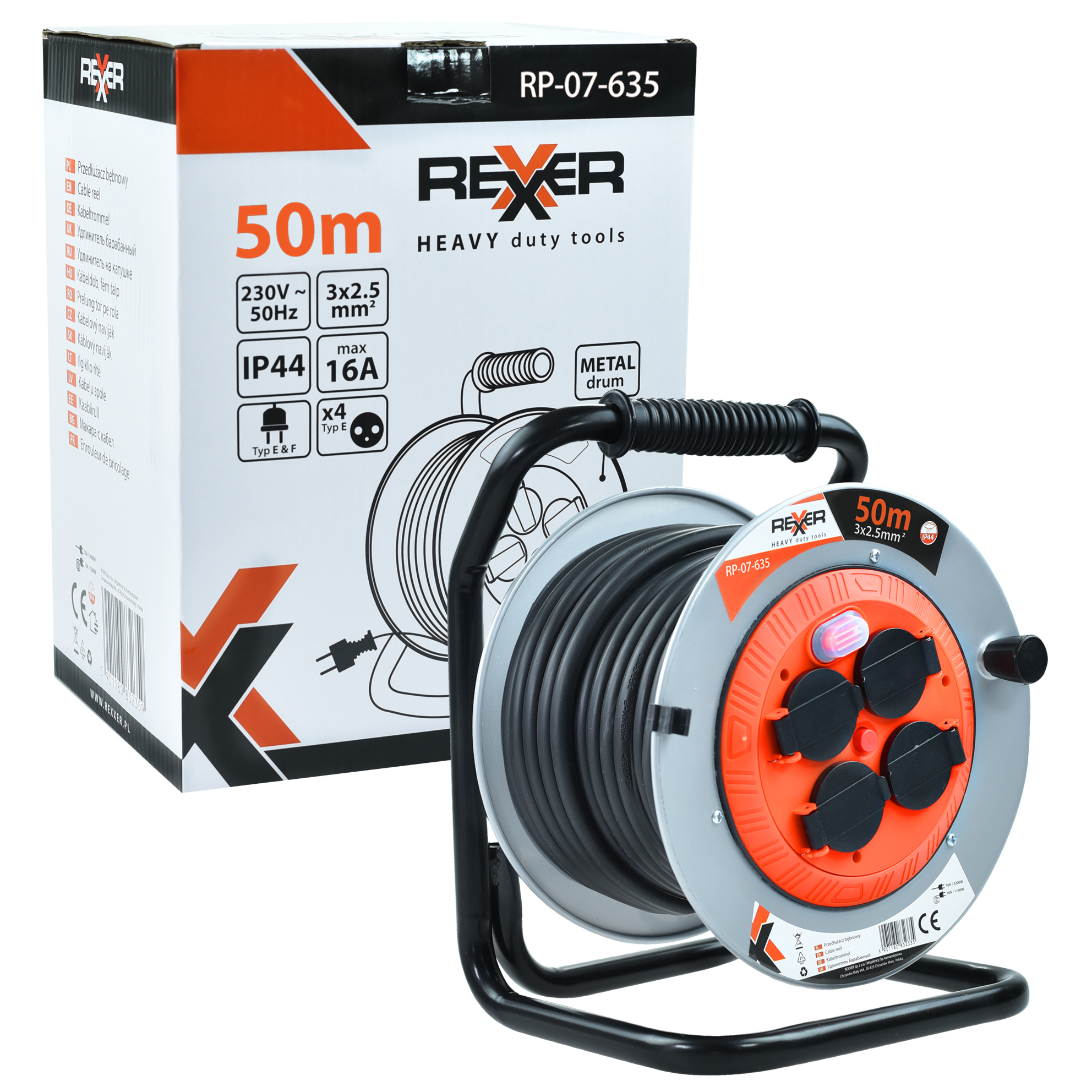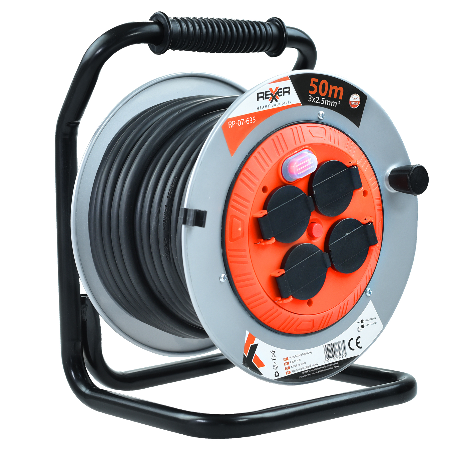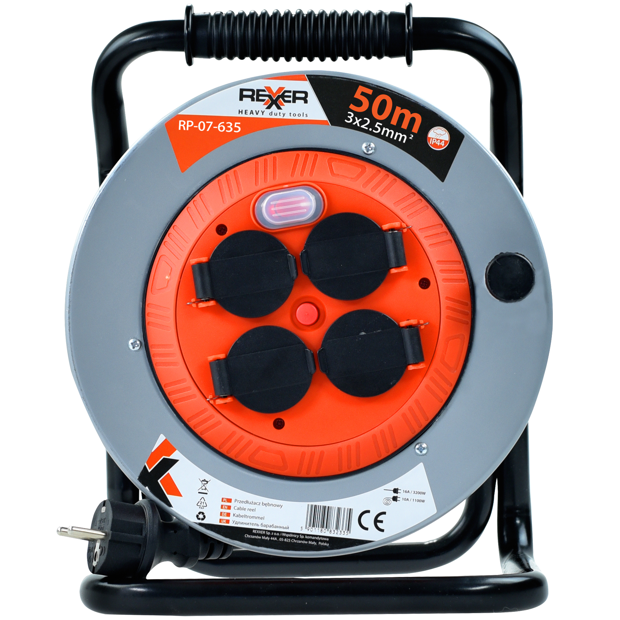 PRZEDŁUŻACZ NA METALOWYM BĘBNIE 50 M 3X2,5 MM2 IP44