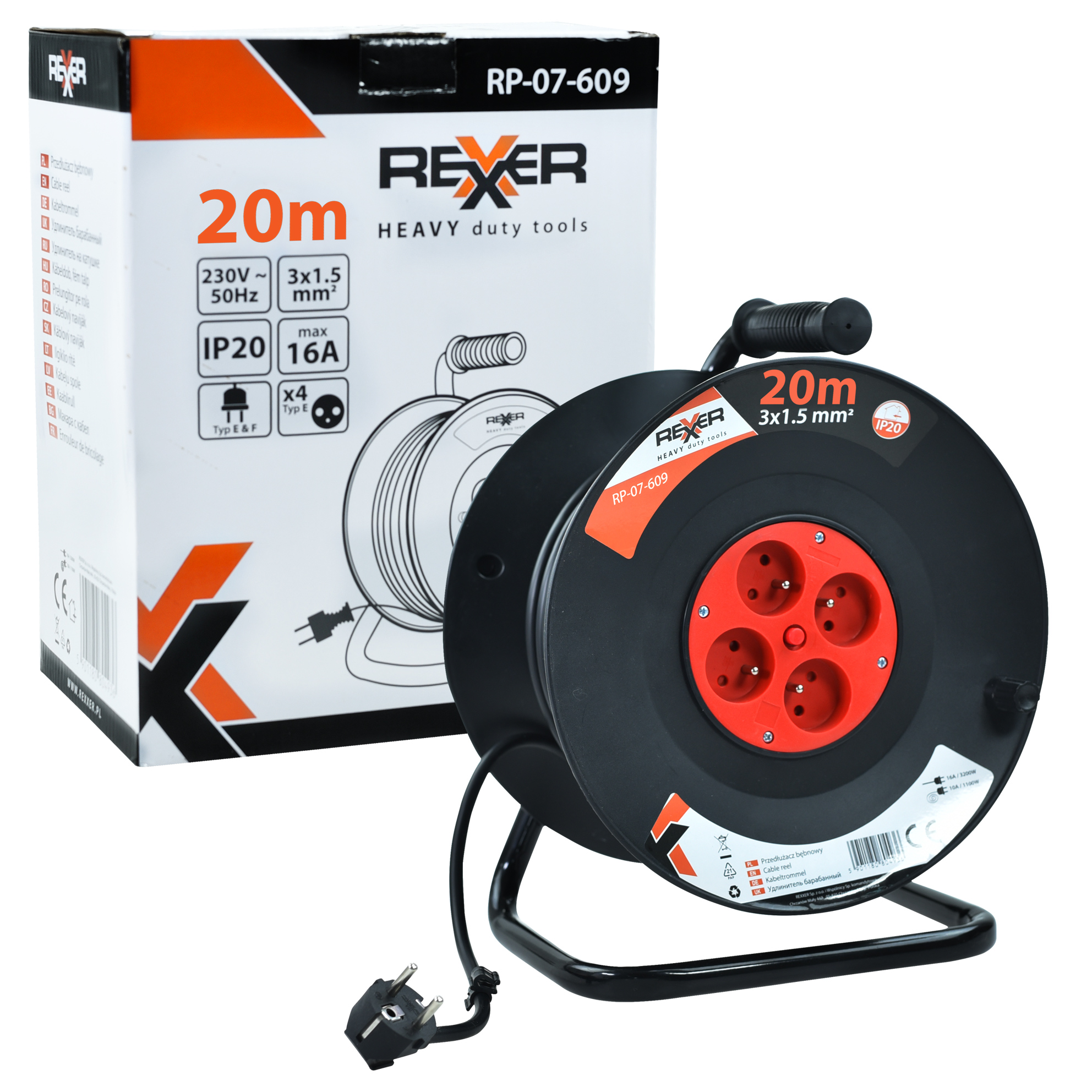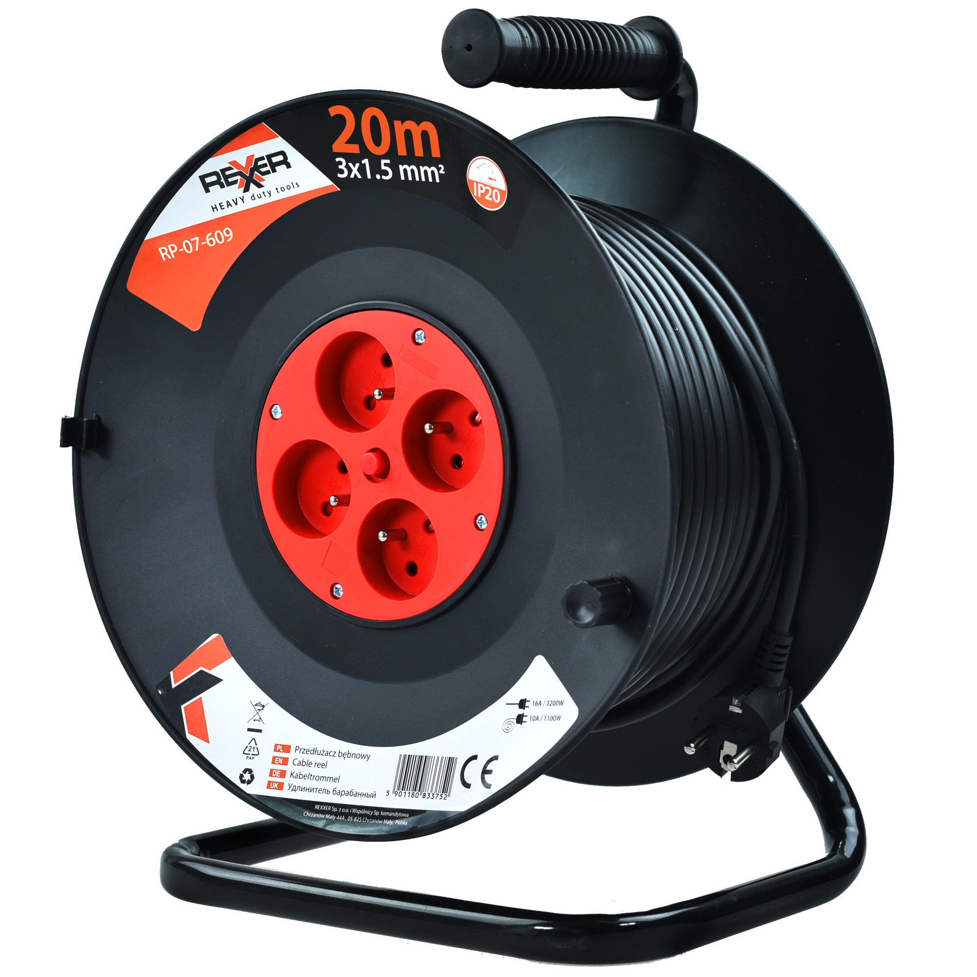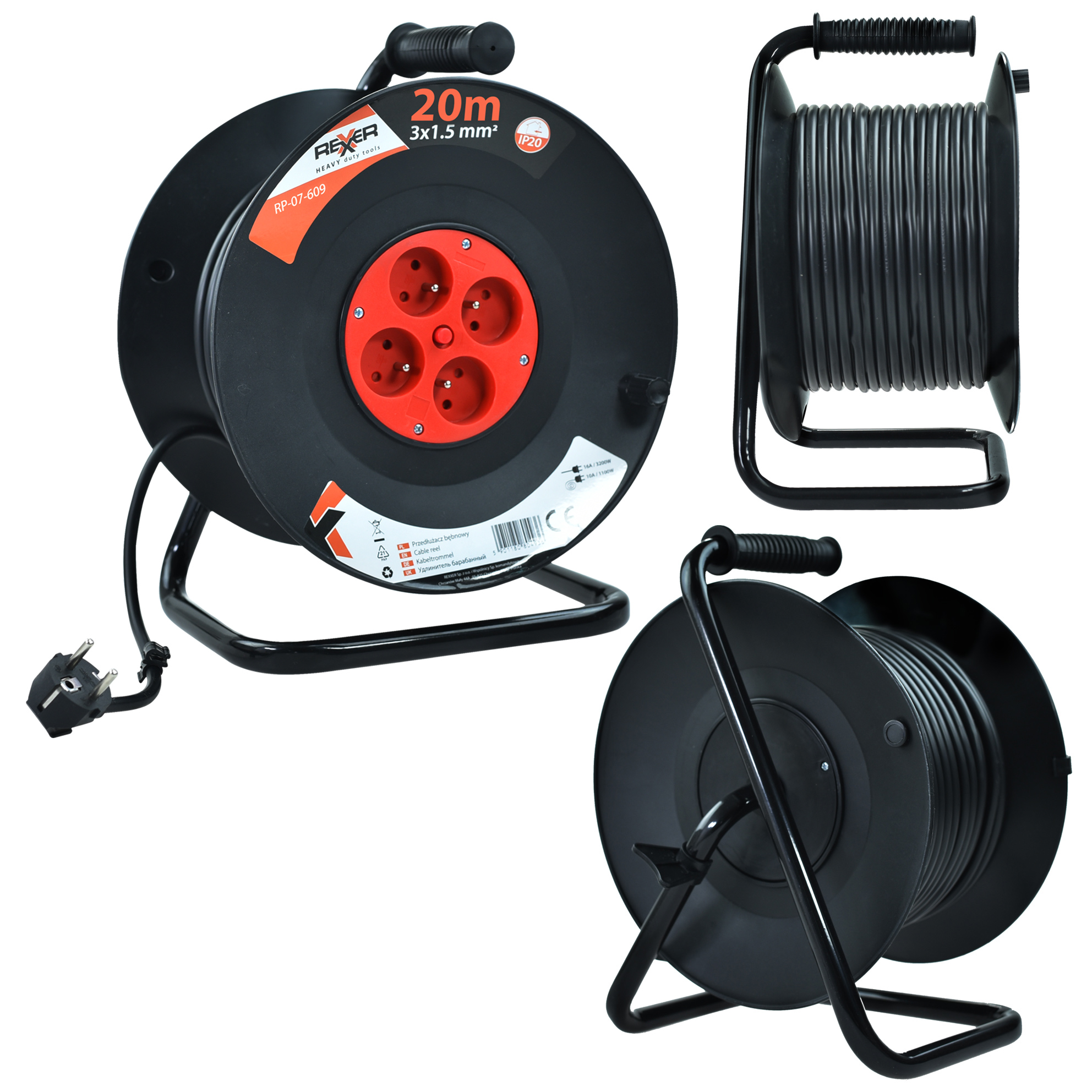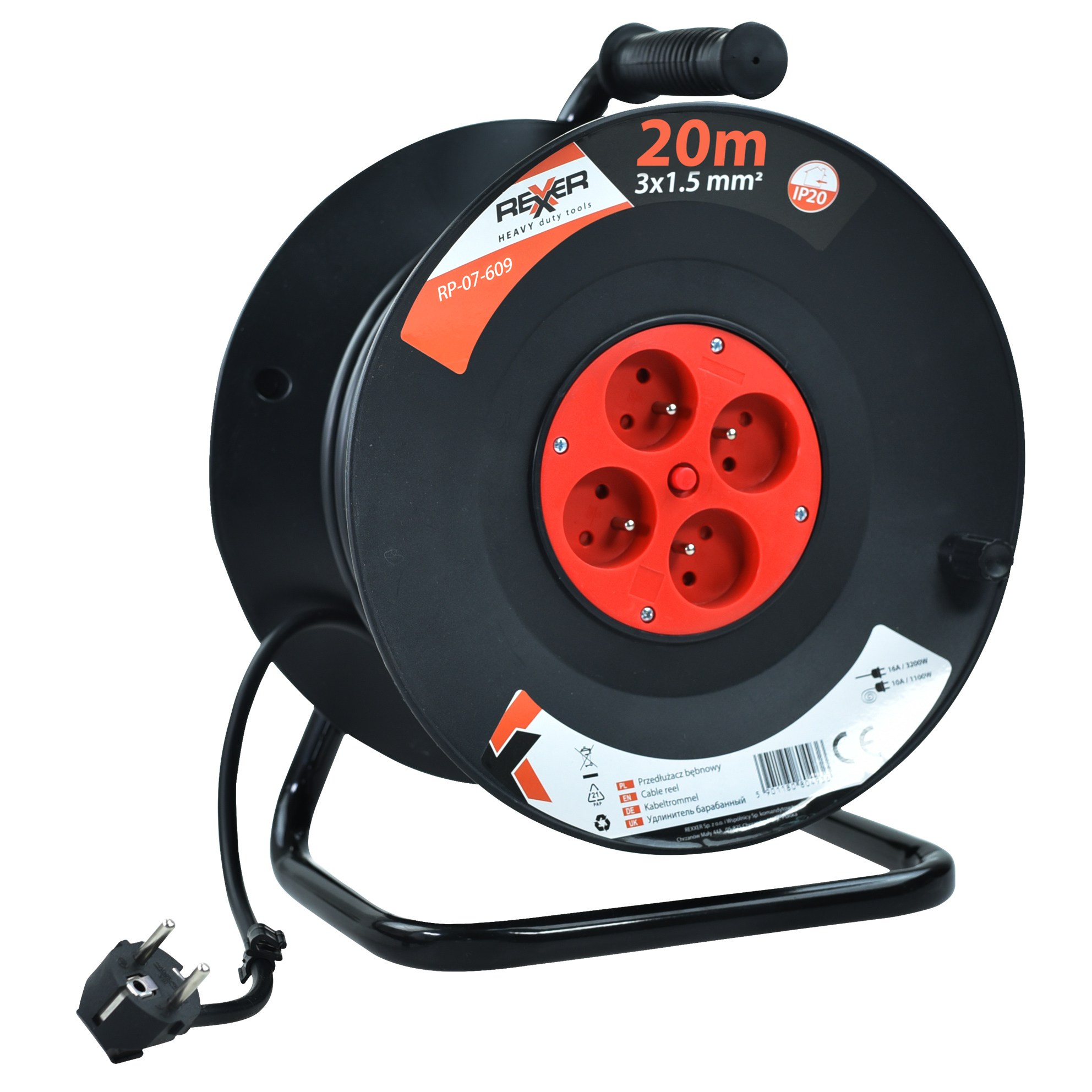 Przedłużacz na plastikowym bębnie 20 m 3x1.5 mm IP20