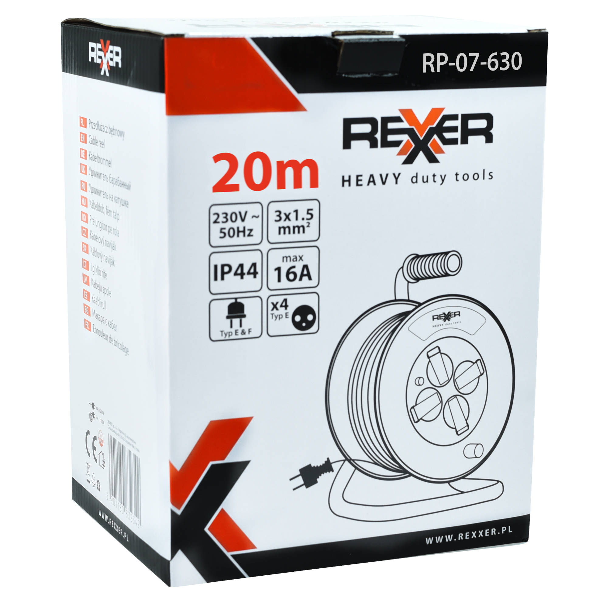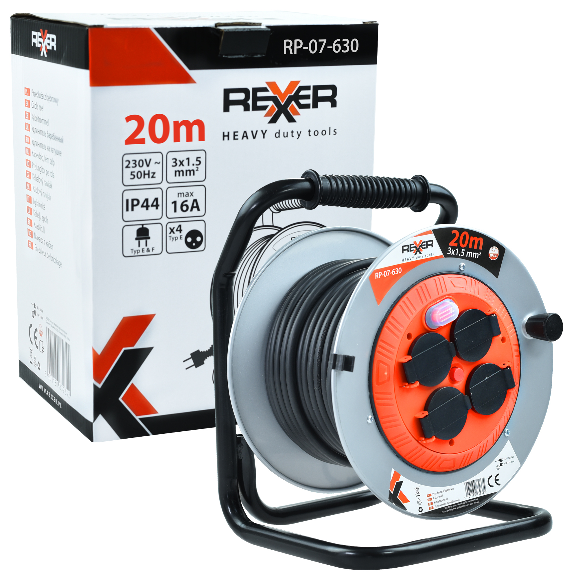 PRZEDŁUŻACZ NA METALOWYM BĘBNIE 20 M 3X1,5 MM2 IP44