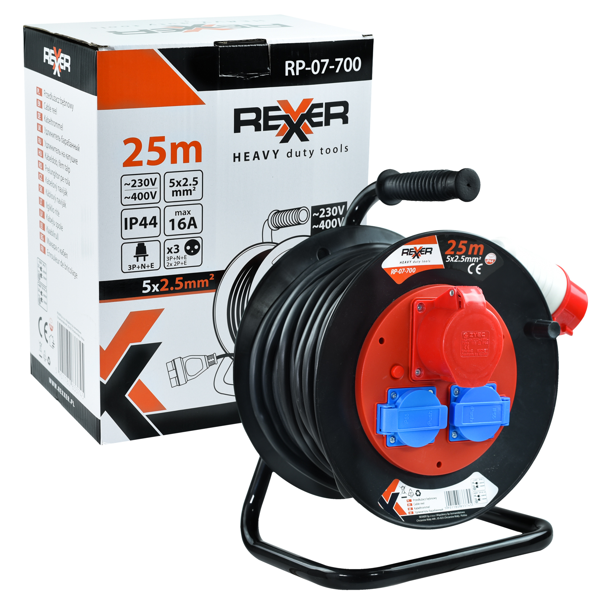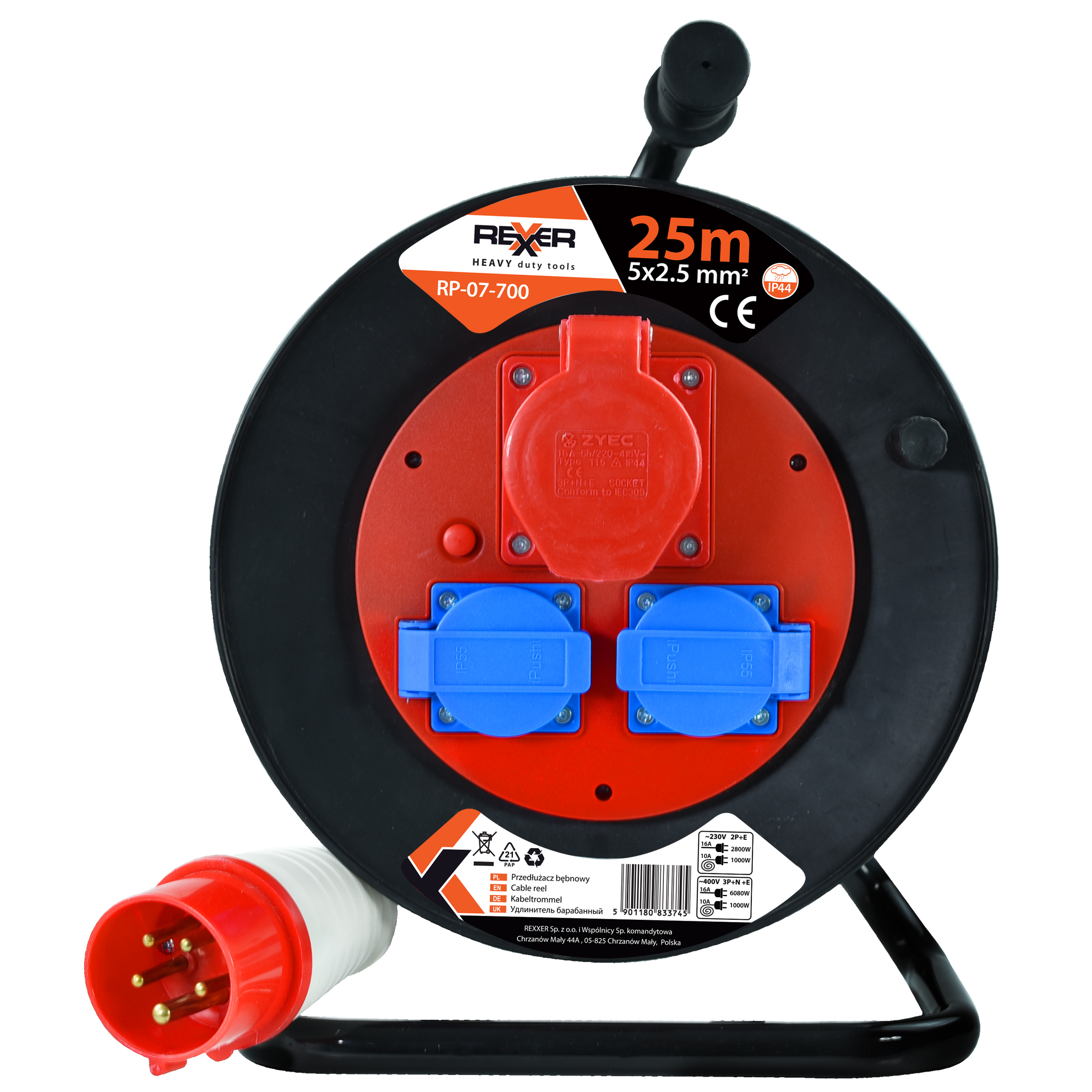 PRZEDŁUŻACZ NA PLASTIKOWYM BĘBNIE 25 M 5X2,5 MM 400V IP44