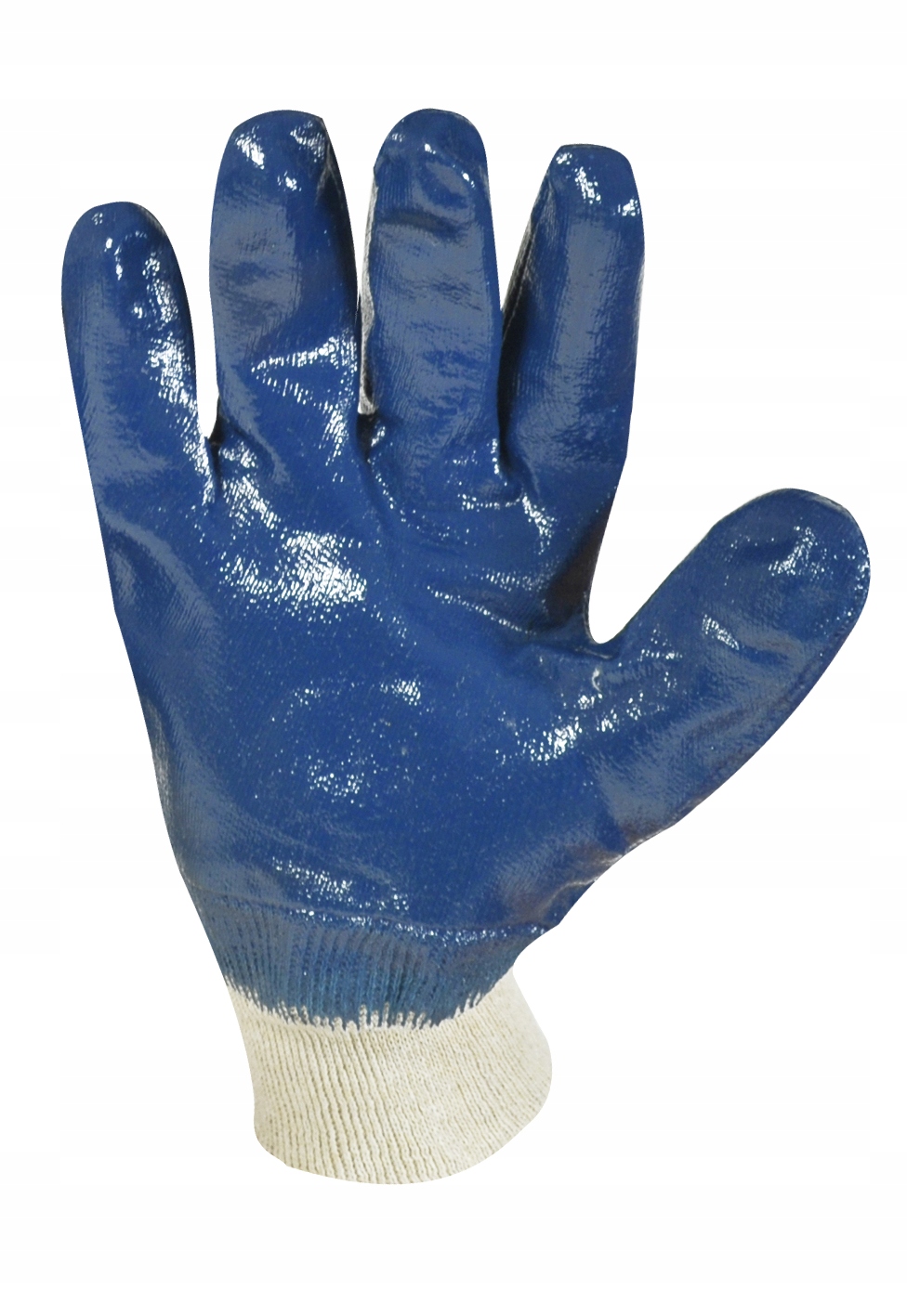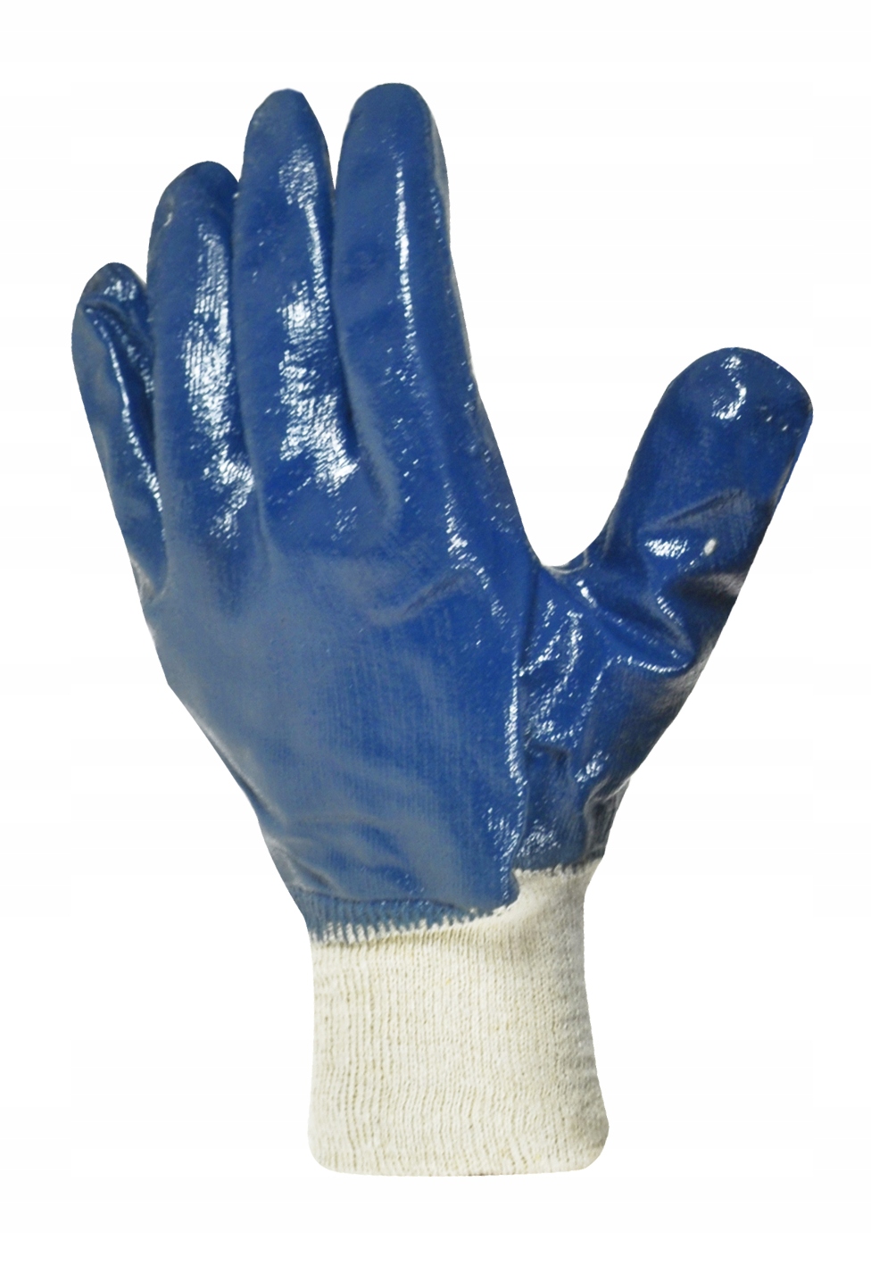 Rękawice wykonane z grubego nitrylu w kolorze niebieskim. Zakończone ściągaczem.