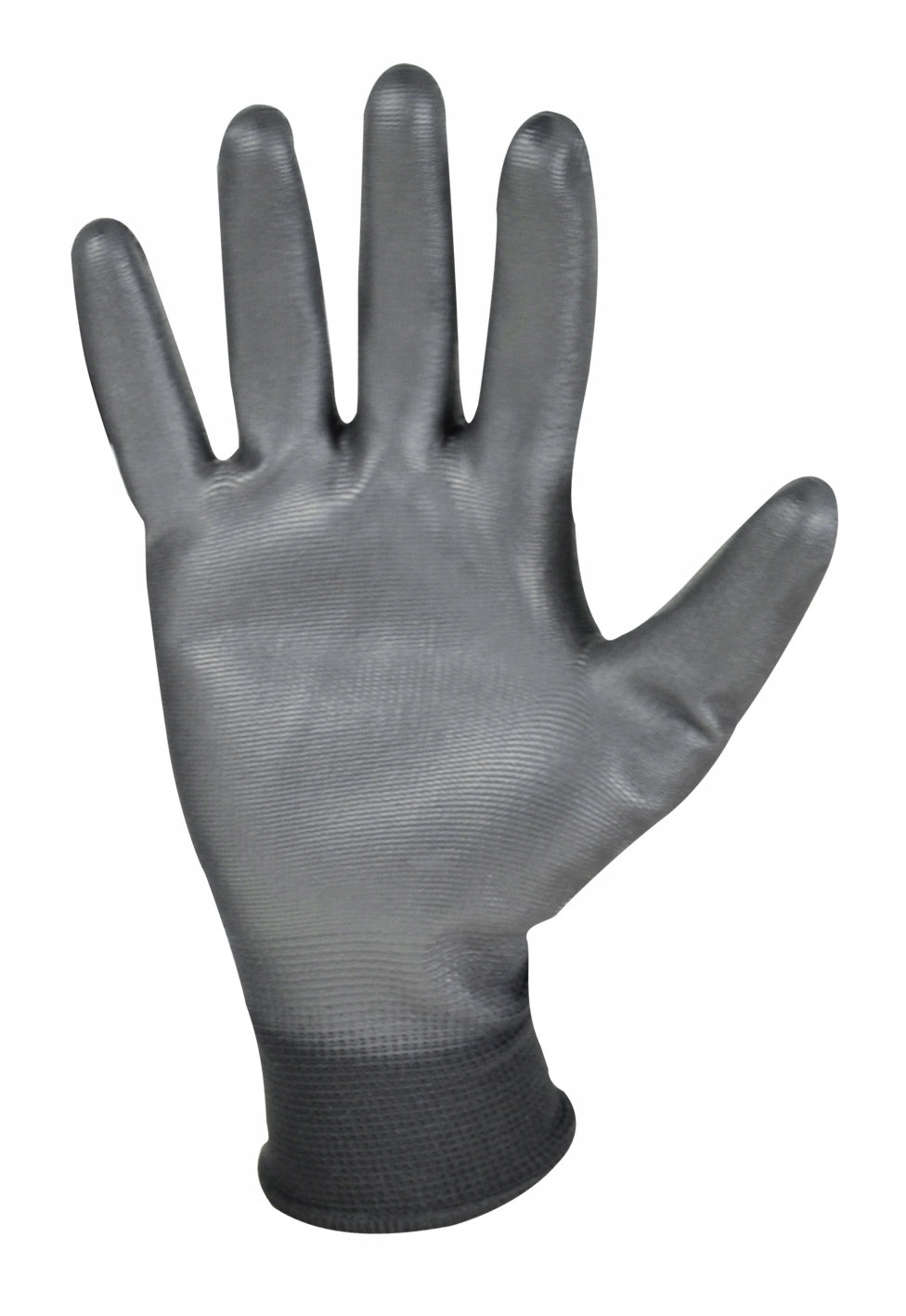 Rękawica dziana w 100% z poliestru, bezszwowa. Powłoka z antypoślizgowego poliuretanu (PU) na stronie chwytnej i końcach palców (strona grzbietowa z dostępem powietrza). W nadgarstku ściągacz obrzucony ściegiem. Rękawice doskonale przylegają do dłoni.