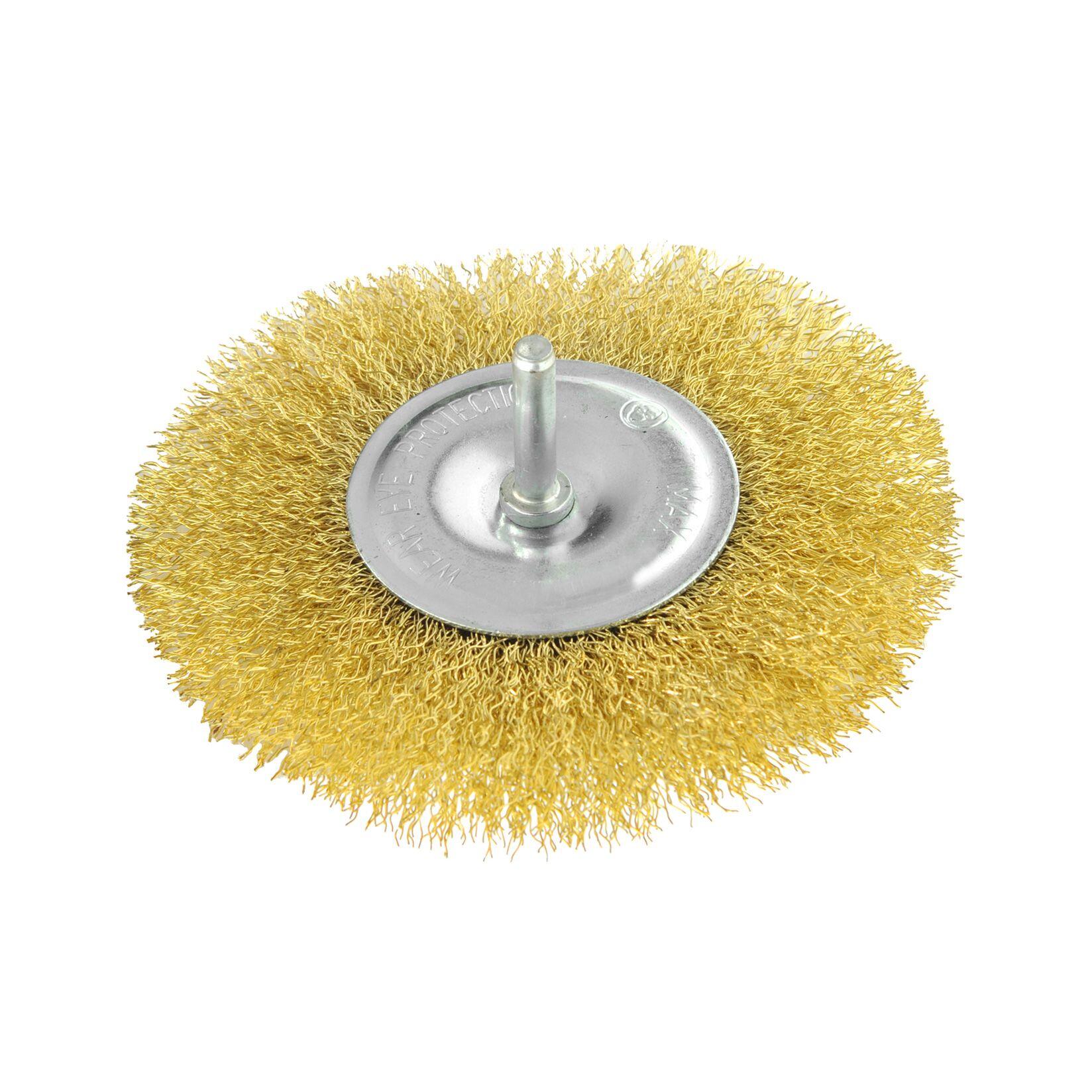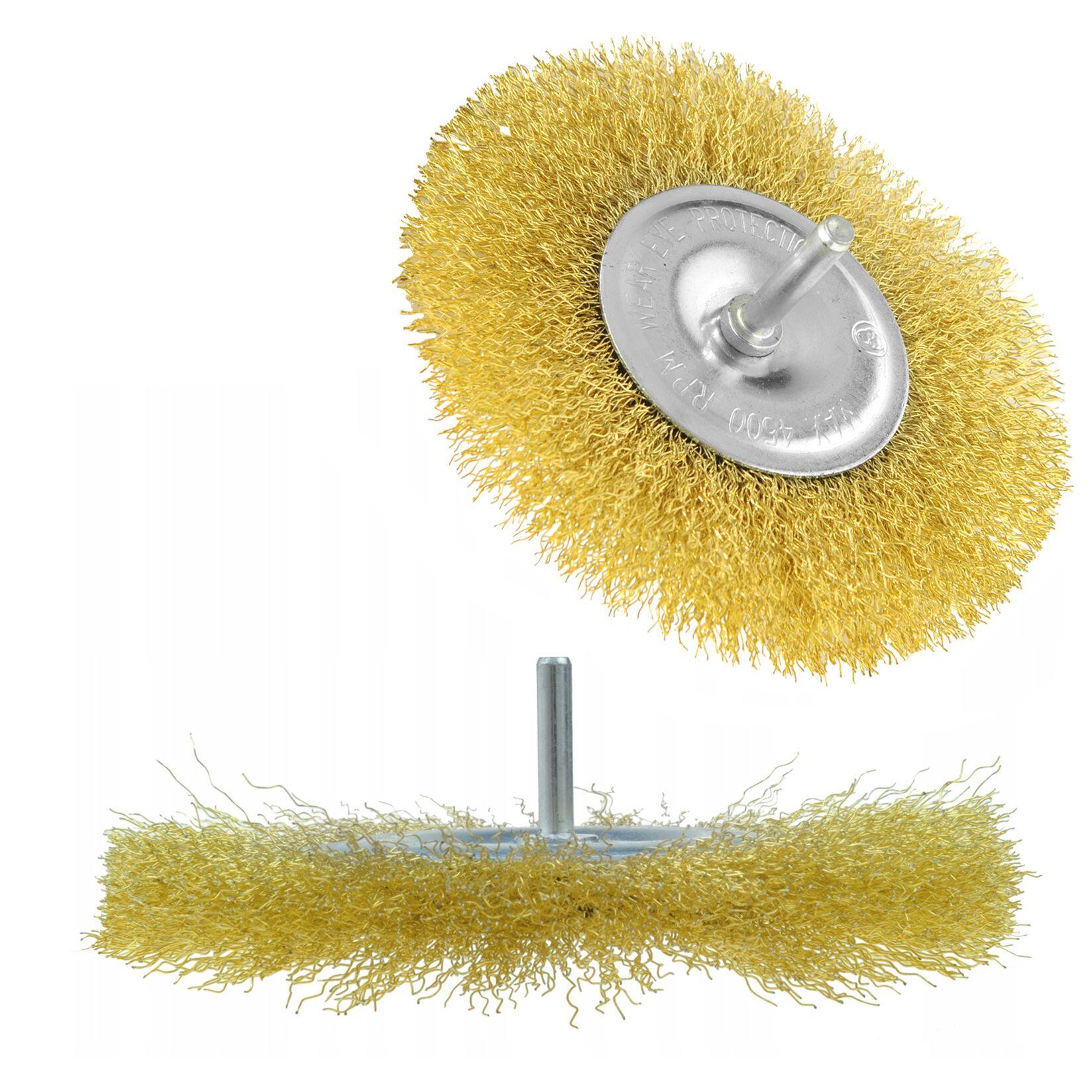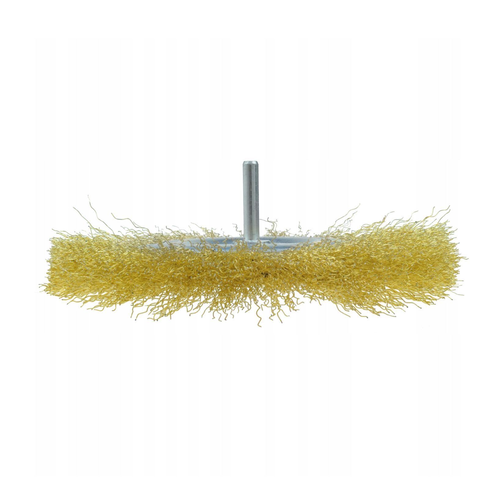 Szczotka tarczowa z trzpieniem to narzędzie skonstruowane z cienkich, giętych drutów, które są ułożone w sposób umożliwiający skuteczne czyszczenie i polerowanie powierzchni. Ten rodzaj szczotki jest powszechnie stosowany w różnych dziedzinach, zarówno w profesjonalnych zastosowaniach przemysłowych, jak i w pracach hobbystycznych. Druty używane w szczotkach są wykonane z wysokiej jakości stali, co zapewnia trwałość i odporność na korozję. Druty są gięte i uformowane w taki sposób, aby utworzyć gęstą powierzchnię czyszczącą. Szczotki tarczowe z trzpieniem są skuteczne w usuwaniu rdzy, farby, osadów, a także w przygotowywaniu powierzchni przed malowaniem lub pokryciem. Są szeroko stosowane w branży metalowej, konstrukcyjnej i remontowej. Ważne jest, aby stosować odpowiednią szczotkę z drutu do danego zadania, aby uniknąć uszkodzenia powierzchni i zapewnić efektywne czyszczenie.