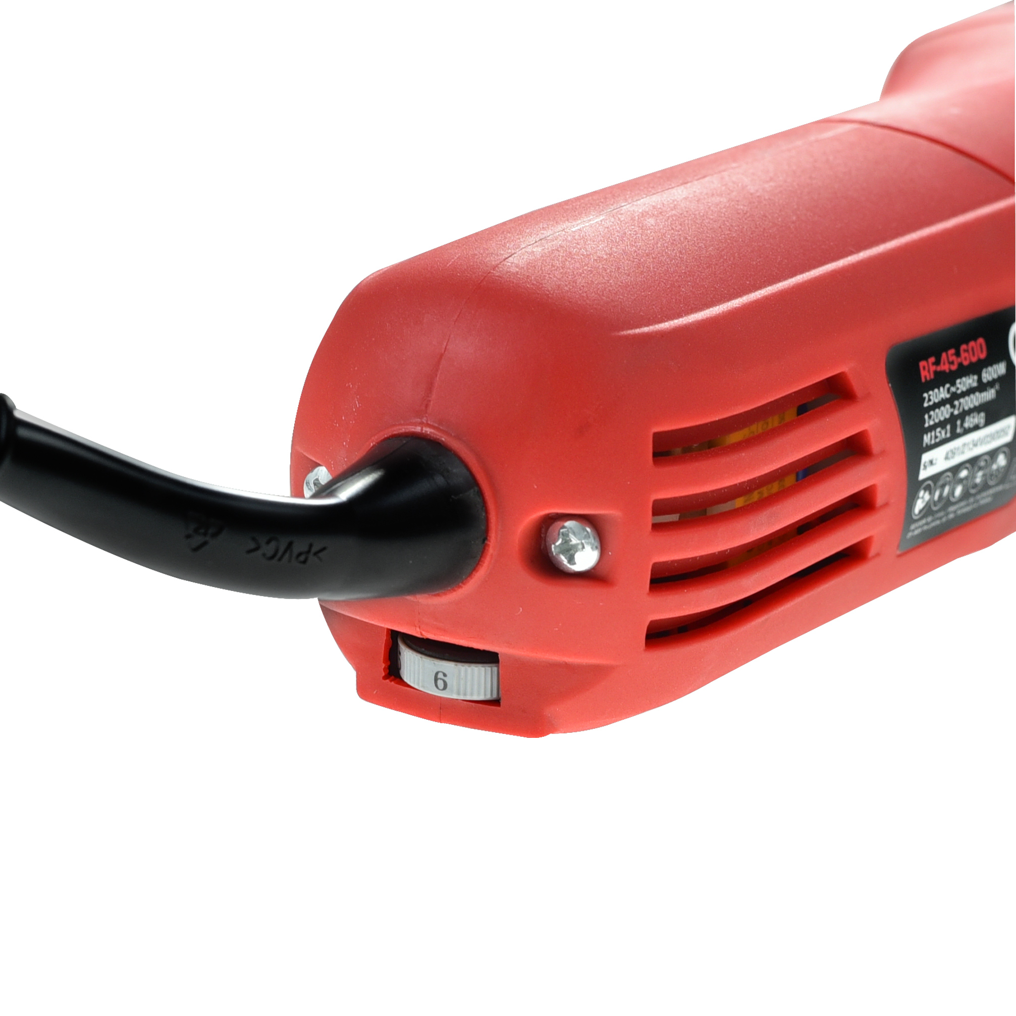 Urządzenie wyposażono w wydajny silnik o mocy 600W oraz płynną regulację obrotów od 12 000 do 27 000 rpm, co pozwala na dostosowanie tempa pracy do rodzaju materiału. Dzięki swojej zwartej konstrukcji model krótki jest idealny do precyzyjnych prac w ciasnych przestrzeniach.