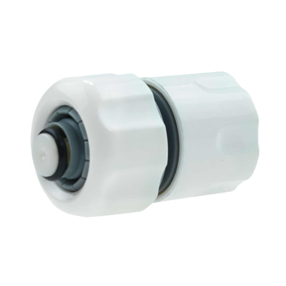 Wysokiej jakości szybkozłączka wyposażona w system STOP pozwalająca w łatwy i szybki sposób na przyłączanie i odłączanie urządzeń zraszających oraz węża do kranu. System STOP pozwala na natychmiastowe zatrzymanie wody podczas odłączania zraszacza. Złączka posiada wyprofilowane ząbki, które pozwalają na solidne zamocowanie końcówki na końcu węża 1/2″. Szybkozłączka zapewnia szczelne połączenie, dzięki czemu woda nie wycieka na zewnątrz. Aby rozłączyć wąż, należy jedynie obrócić część żeńską o ćwierć obrotu i odciągnąć ją od części męskiej. Jest kompatybilna ze wszystkimi złączkami dostępnymi na rynku. Produkt został wyprodukowany w Polsce.