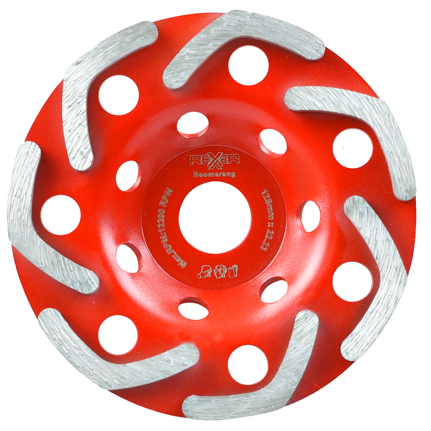 Tarcza diamentowa REXXER Boomerang o średnicy 125 mm i otworze montażowym 22,2 mm to profesjonalne narzędzie przeznaczone do intensywnego szlifowania powierzchni betonowych i materiałów budowlanych. Jej innowacyjna konstrukcja w kształcie boomeranga zapewnia lepszy dostęp do trudnodostępnych miejsc i precyzyjną obróbkę krawędzi.