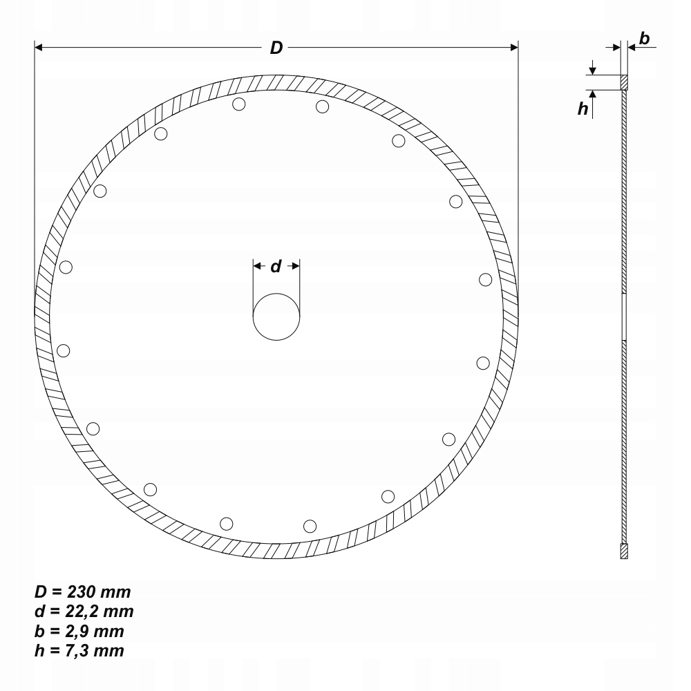 - Średnica tarczy (D): 230 mm