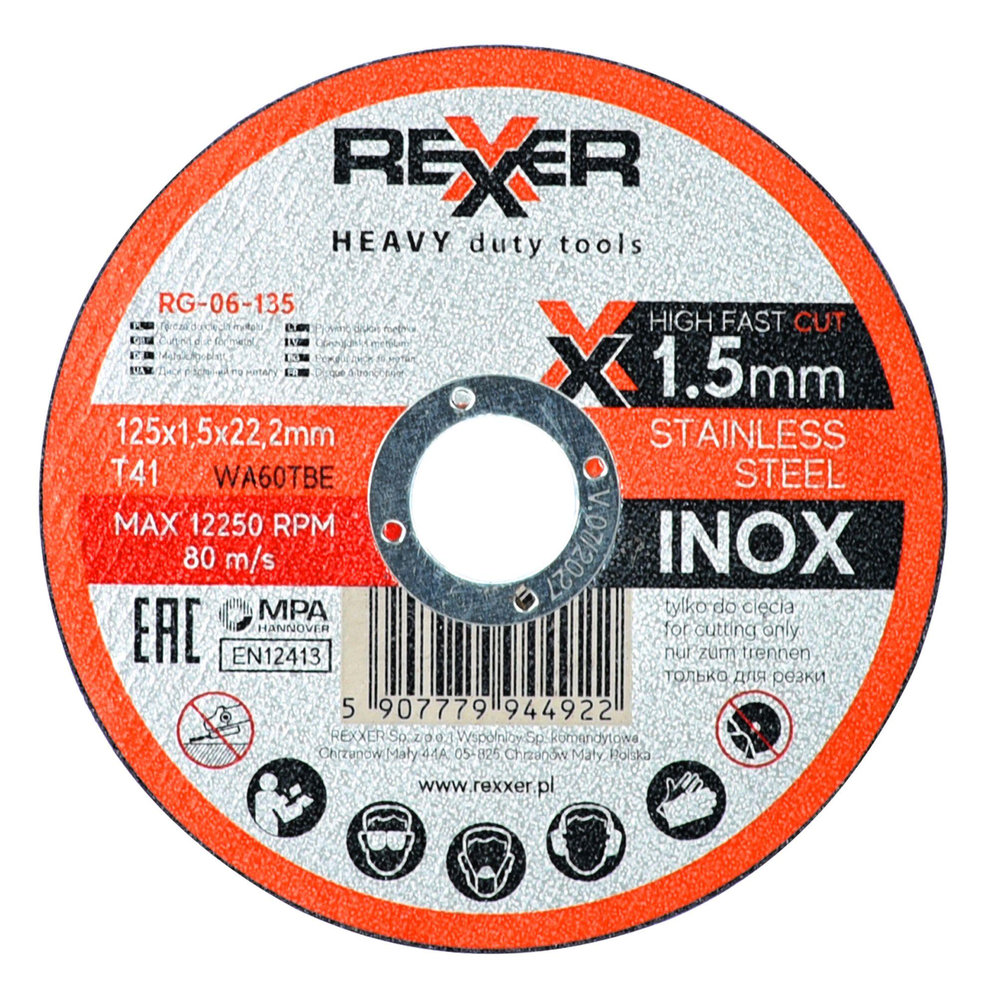 Tarcze korundowe do cięcia stali nierdzewnej INOX o wymiarach 125 x 1.5 mm to niezastąpione narzędzie zarówno dla profesjonalistów, jak i hobbystów, którzy potrzebują **precyzyjnego i efektywnego cięcia**. Wysoka jakość tarczy korundowej gwarantuje **niezawodność i trwałość**, zapewniając dokładne cięcie stali nierdzewnej bez uszkodzeń. Idealnie nadaje się do cięcia zarówno cienkich, jak i grubych materiałów stalowych. Dzięki niewielkiej grubości tarczy cięcie jest **łatwe i precyzyjne**, co minimalizuje straty materiału. Niezależnie od tego, czy pracujesz nad małymi projektami warsztatowymi, czy większymi zadaniami budowlanymi, ta tarcza spełni Twoje oczekiwania. Wykonana z wysokiej jakości materiałów i **dwustronnie wzmacniana**, jest niezwykle trwała i odporna na zużycie. Oznacza to dłuższą żywotność i wydajność, co przekłada się na oszczędność czasu i pieniędzy. Zapewnia pewność i precyzję podczas cięcia. Zestaw zawiera 25 sztuk takich samych tarcz (RG-06-135).