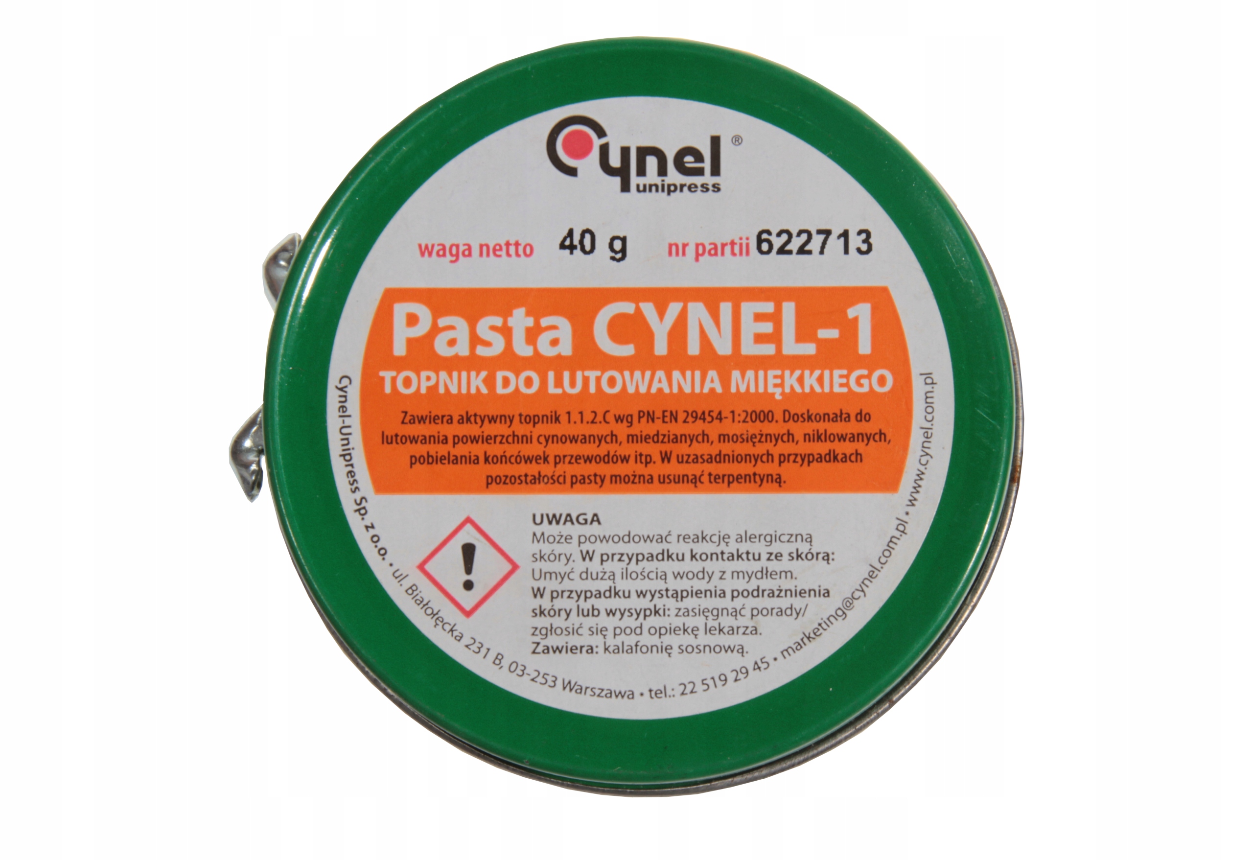 Pasta zawiera aktywny topnik, wspomaga proces lutowania spoiwem cynowym.