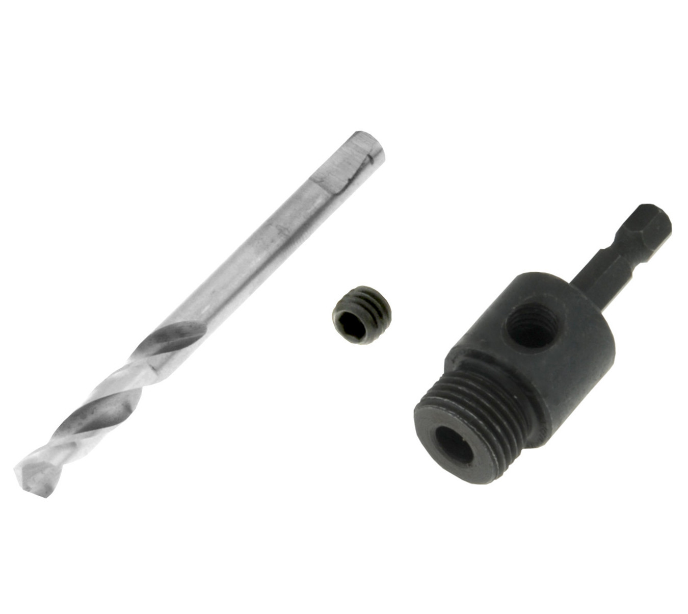 Adapter jest wykonany z trwałego stopu metali, co zapewnia niezawodność i długotrwałe użytkowanie, nawet w trudnych warunkach pracy. Posiada wiertło pilotujące, które ułatwia precyzyjne ustawienie otworu, oraz śrubę kontrującą wiertło pilotujące, która zabezpiecza przed przesuwaniem się otwornicy podczas pracy. Dzięki temu adapter zapewnia nie tylko precyzję, ale także bezpieczeństwo podczas wiercenia.