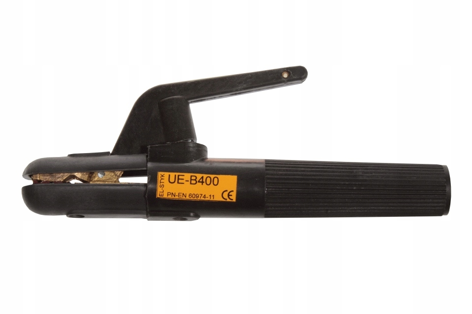 Wysokiej jakości uchwyt elektrodowy umożliwiający spawanie prądem 400A. Odporna na wysokie temperatury rękojeść gwarantuje solidność.