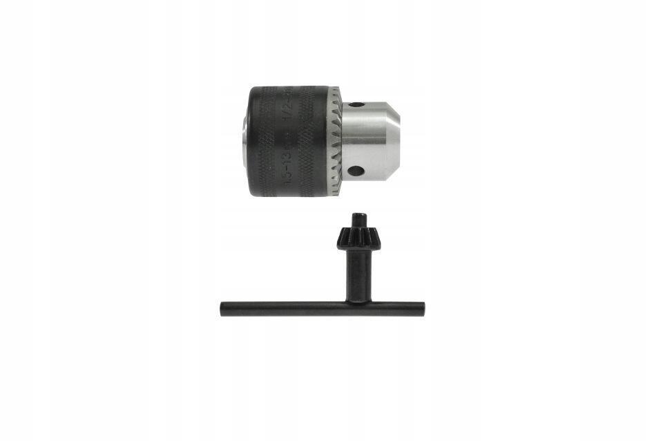 Uchwyt wiertarski szczękowy jest elementem wymiennym montowanym na wrzecionach z gwintem 1/2″ 20 UNF. Szczęki rozwierają się do średnicy 13mm. Zestaw zawiera kluczyk do zaciskania i luzowania szczęk.