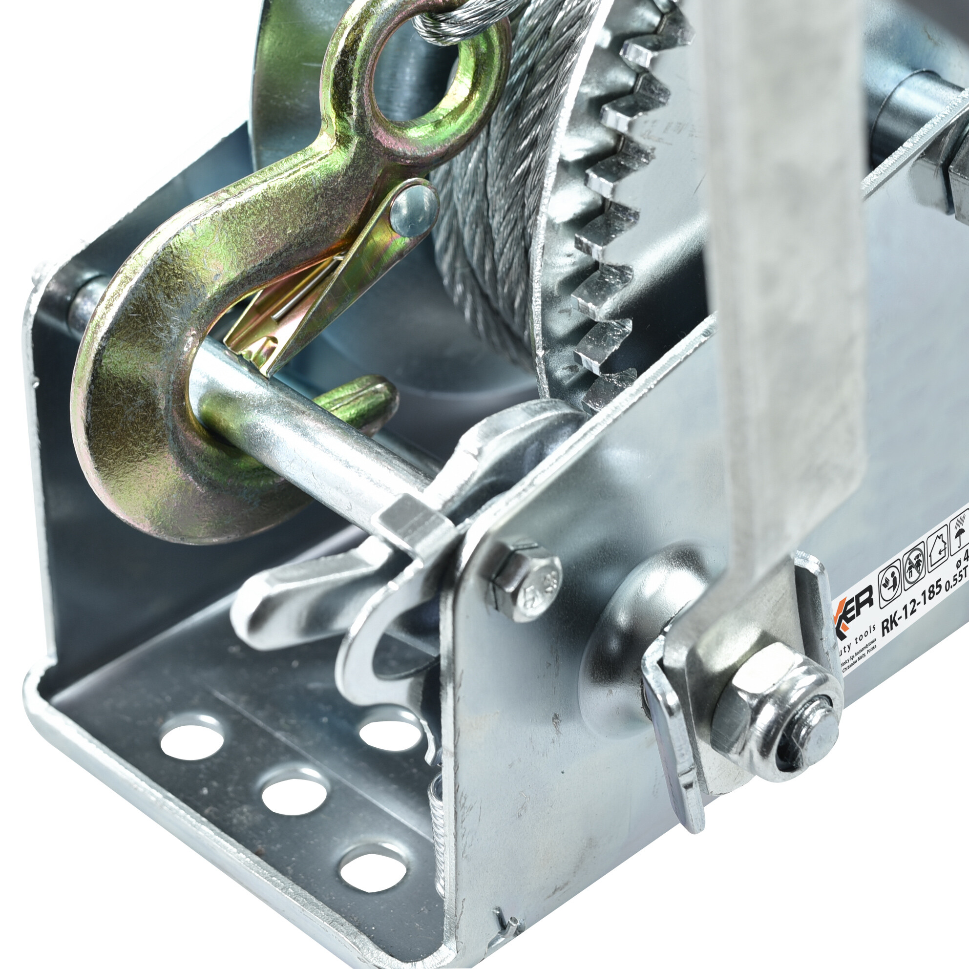 Wciągarka ręczna linowa na korbę to solidne i niezawodne urządzenie przeznaczone do wciągania i opuszczania różnych przedmiotów. Wykonana z wysokiej jakości materiałów, gwarantuje trwałość i niezawodność w codziennym użytkowaniu. Wyposażona jest w mocny hak ze sprężyną zwrotną, co zapewnia bezpieczną i bezproblemową pracę. Materiały użyte do produkcji wciągarki są odporne na uszkodzenia, co zapewnia długą żywotność urządzenia. Dzięki solidnej konstrukcji i przemyślanemu projektowi, wciągarka zapewnia wygodne i bezpieczne wciąganie oraz opuszczanie przedmiotów.
