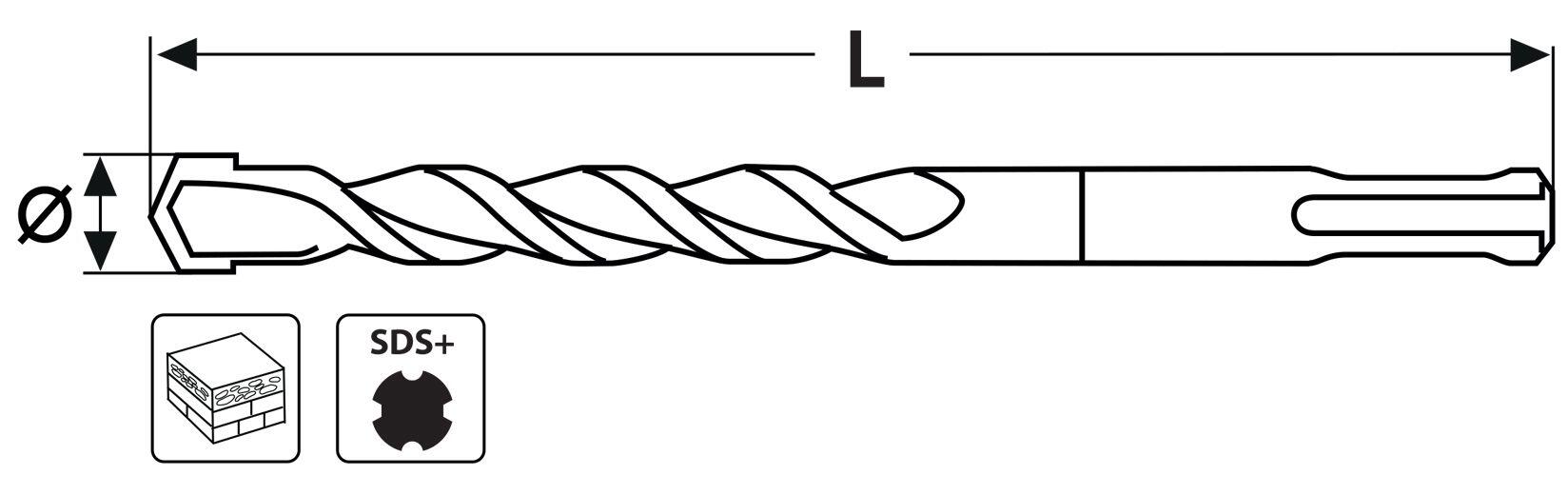 Wiertło do betonu SDS+ to rodzaj wiertła przeznaczonego do wiercenia w twardych materiałach, takich jak beton, cegła czy kamień. SDS+ to system mocowania wiertła, w którym zastosowano specjalną szpilkę, która pozwala na mocniejsze i bardziej precyzyjne osadzenie wiertła w materiale. Jednym z ważnym zastosowanie w przypadku wiertła SDS+ jest to że jest ono przystosowane do wiertarek z udarem, dzięki czemu przyspiesza proces wiercenia w twardych materiałach. Jeśli mamy zamiar umocować w ścianie, podłodze czy suficie kołek rozporowy to za pomocą właśnie takiego wiertła i wiertarki wykonamy otwór pod jego umocowanie. Wiertło zostało wykonane z wysokiej jakości stali i zakończone płytką widiową która gwarantuje wykonanie otworów nawet w bardzo twardych odmianach betonu. Głęboki szlif rowków do odprowadzania urobku efektywnie go odprowadza nie pozwalając na zaklinowanie wiertła nawet w głębokich odwiertach.