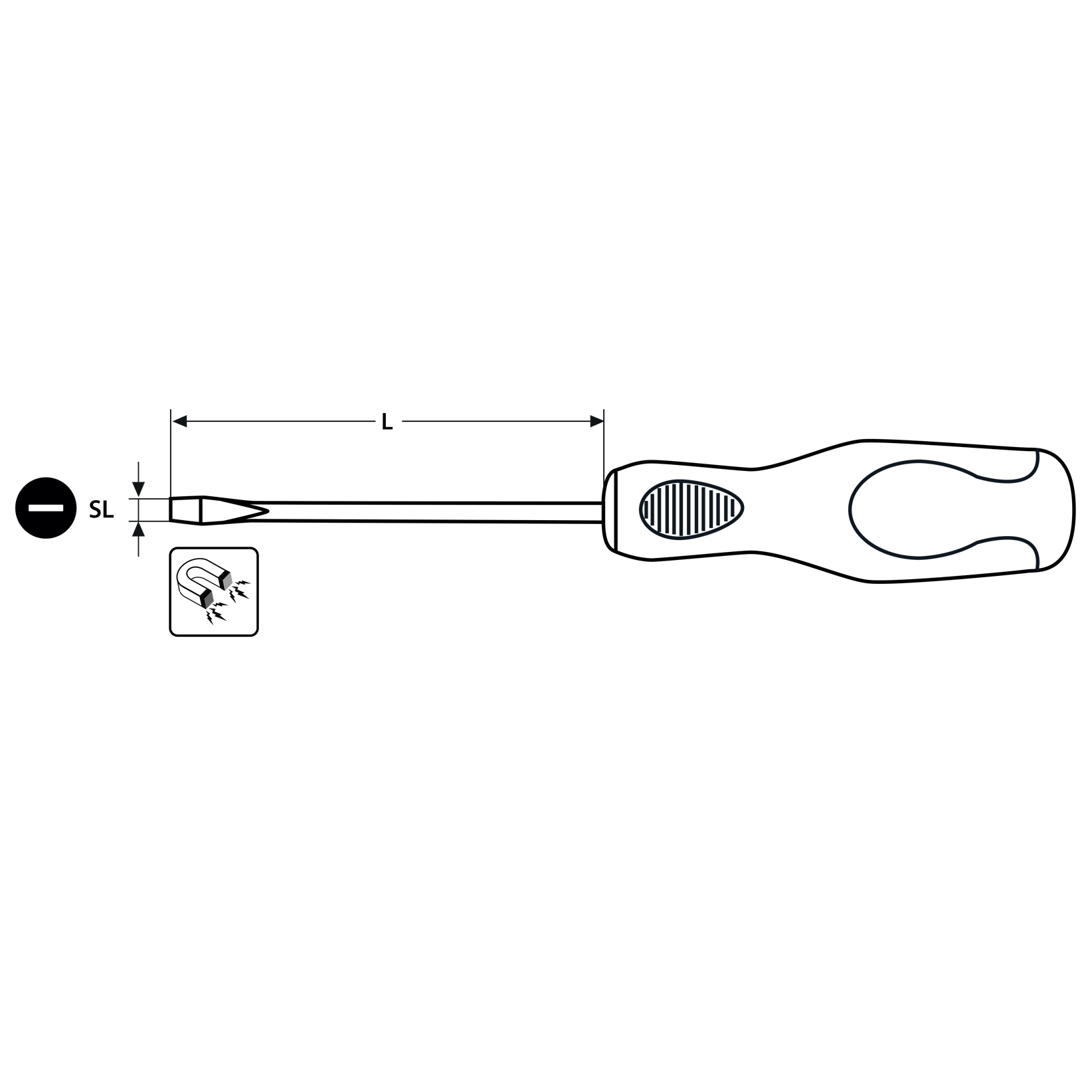 Wkrętak płaski z końcówką magnetyczną SL4x80 mm, CrV REXXER