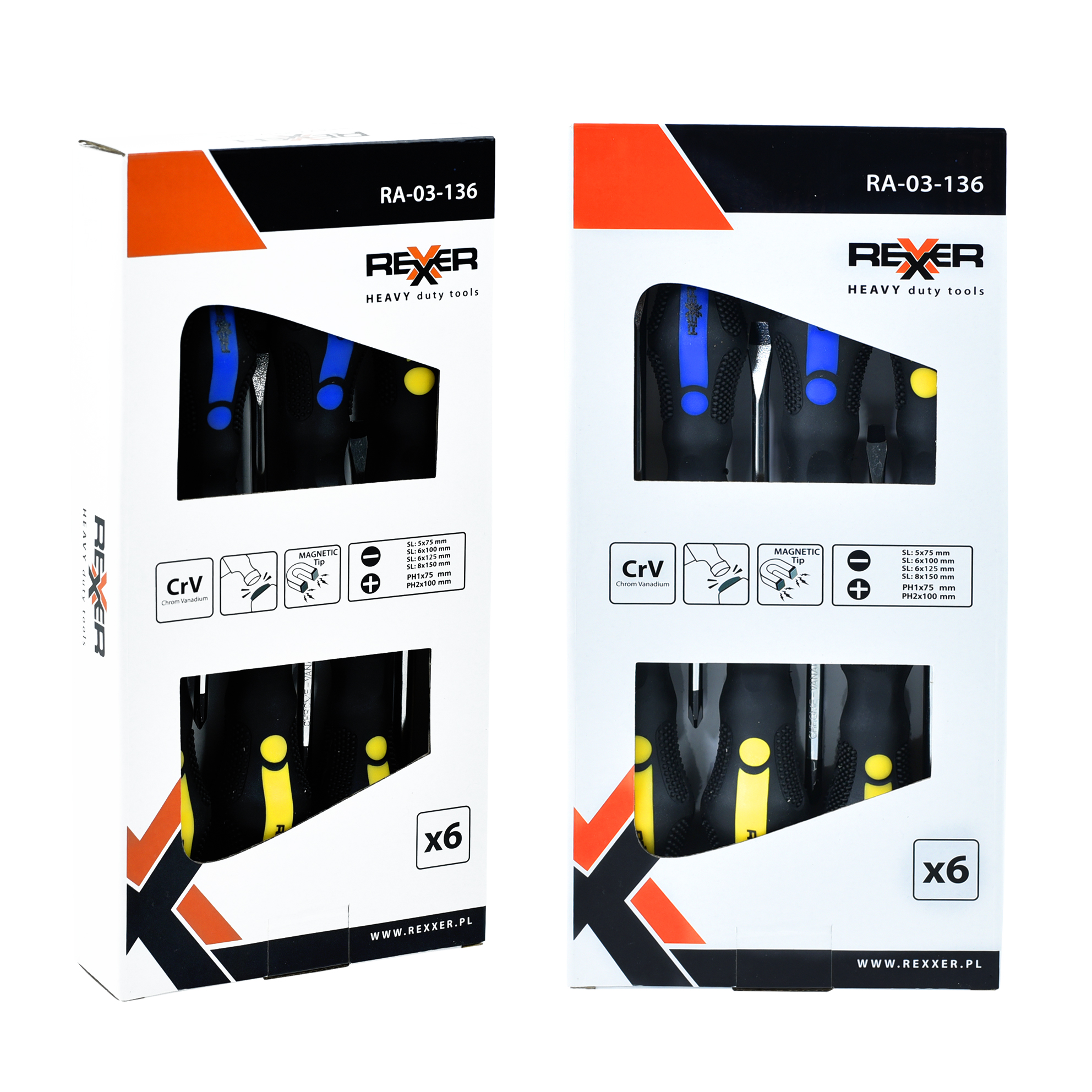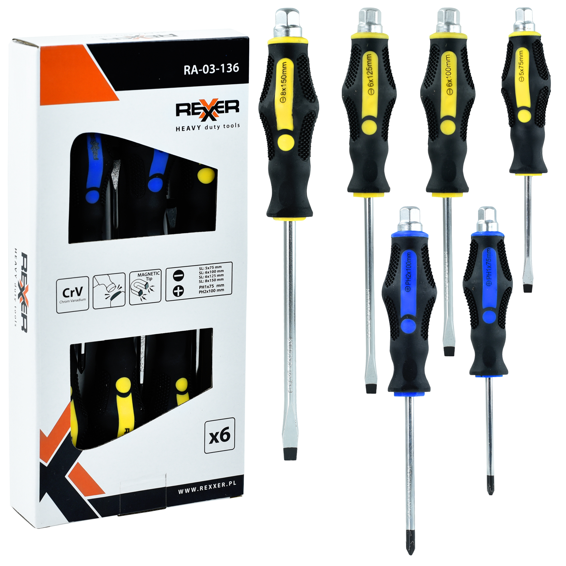 6-częściowy zestaw wkrętaków do pobijania, CrV REXXER