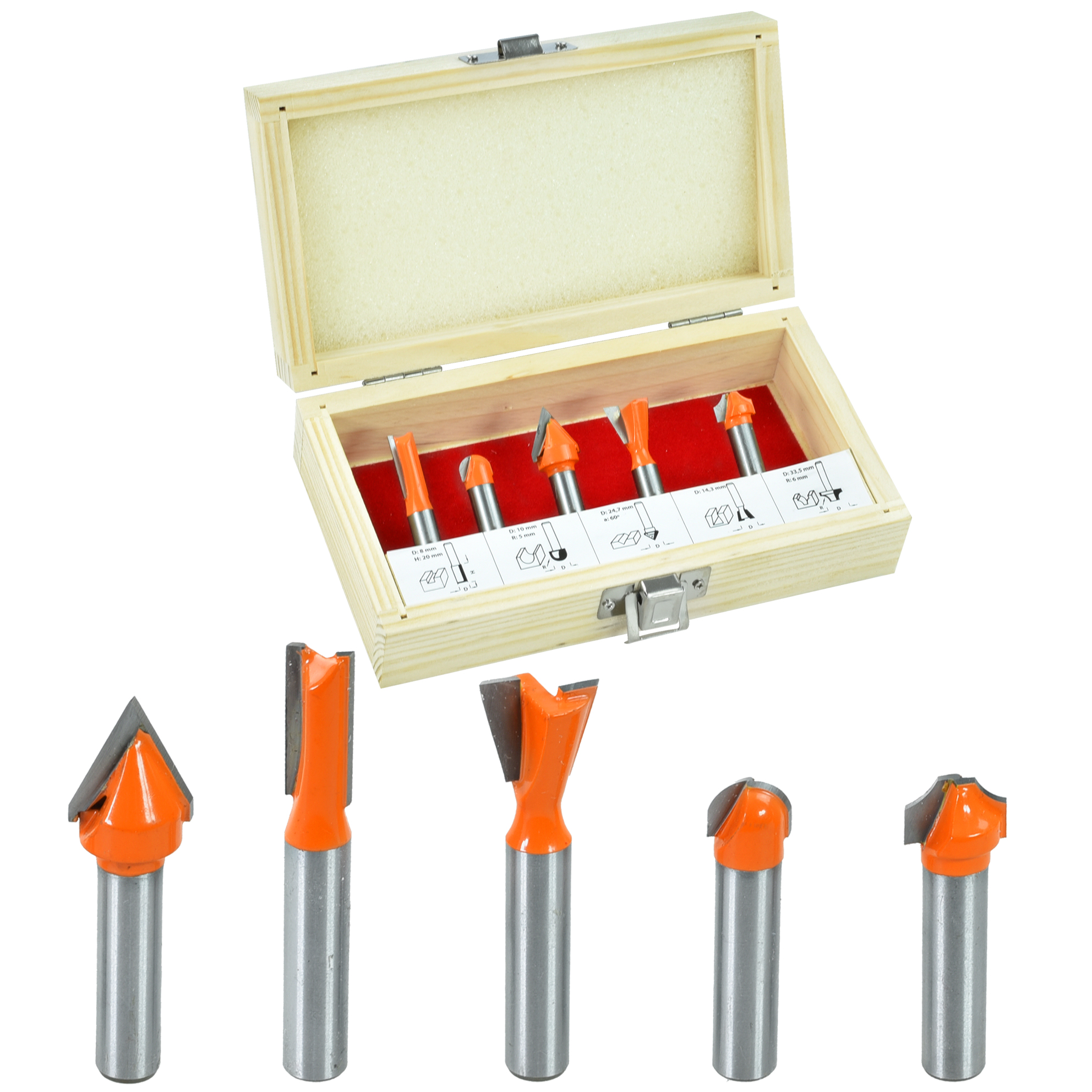 FREZY DO DREWNA KSZTAŁTOWE KPL. 5 CZ. TRZPIEŃ 8 MM