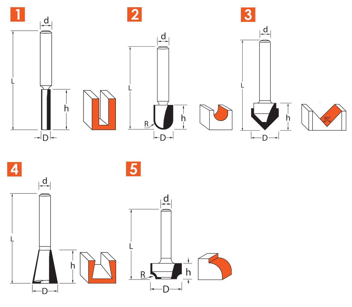 FREZY DO DREWNA KSZTAŁTOWE KPL. 5 CZ. TRZPIEŃ 8 MM