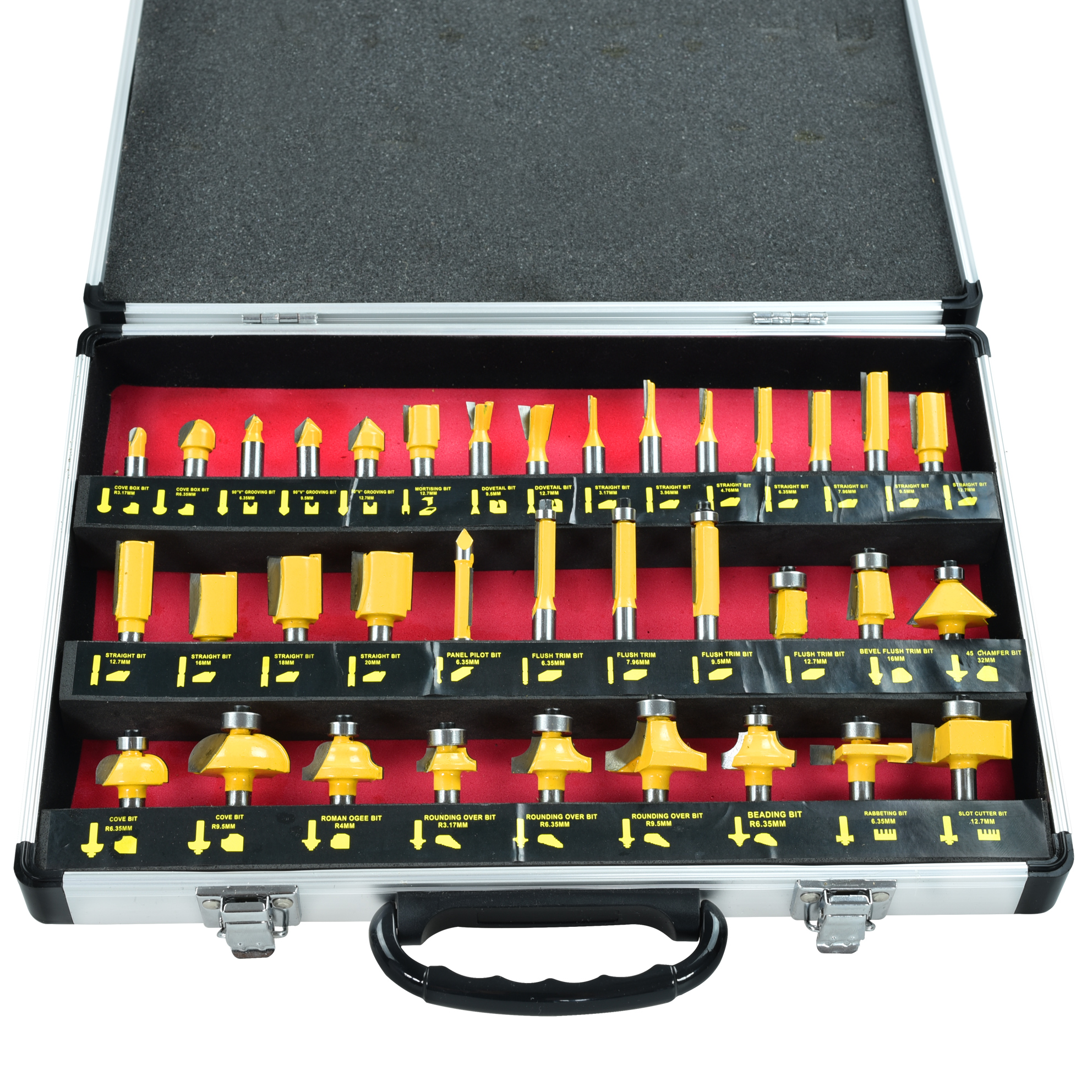 35 sztukowy zestaw jest bogaty w różnorodne rodzaje frezu co pozwoli dobrać frez do każdej pracy. W zestawie są frezy zaokrąglające, frezy proste, frezy kopiujące, frezy fazujące, frezy do grawerowania. W zależności od pracy każdy frez znajdzie swoje zastosowanie. Jest to idealny zestaw dla każdego majsterkowicza jak i stolarza.