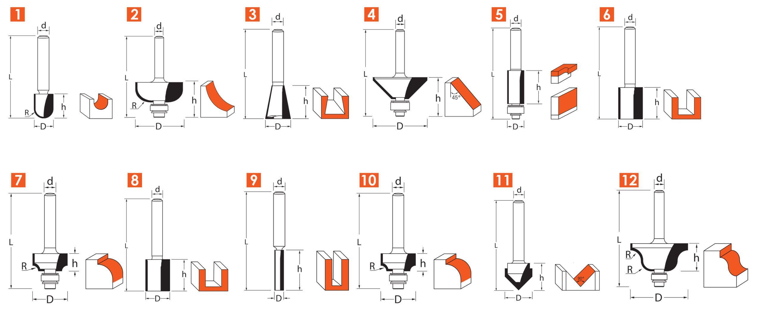 • Frez 1: [D] 12,7 mm [R] 6,3 mm [h] 9 mm [L] 37 mm