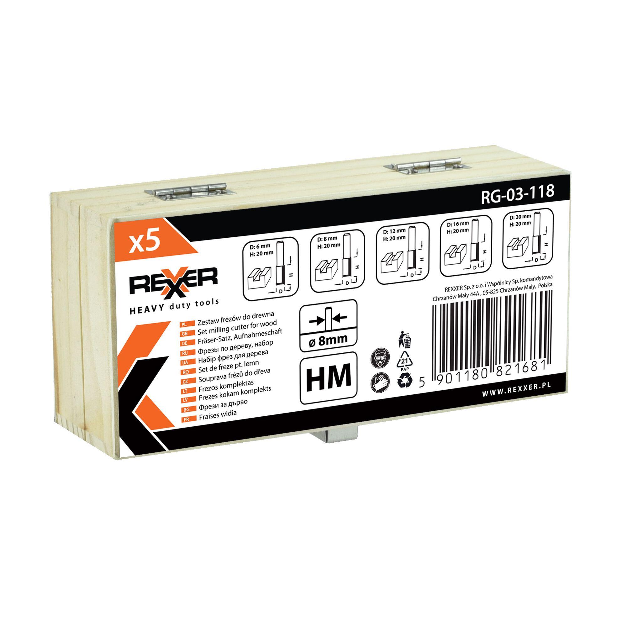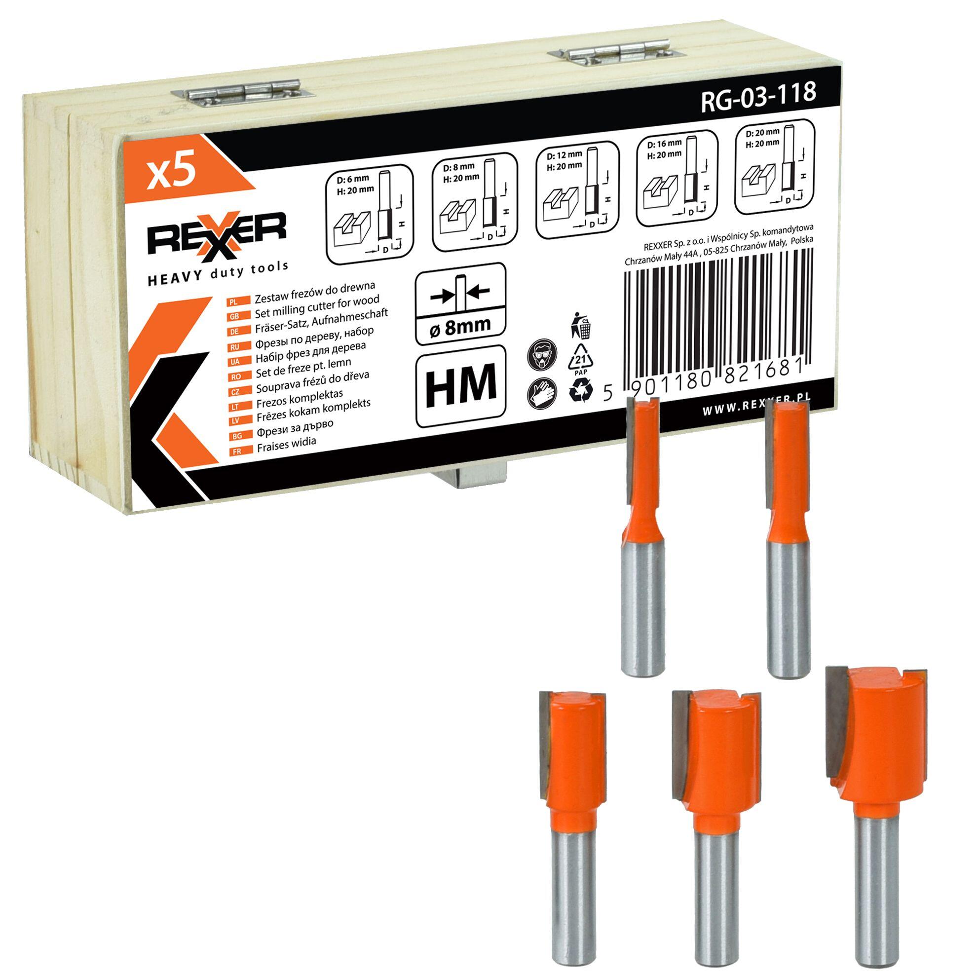 ZESTAW FREZÓW PROSTYCH HM DO DREWNA d: 8 MM 5 SZTUK