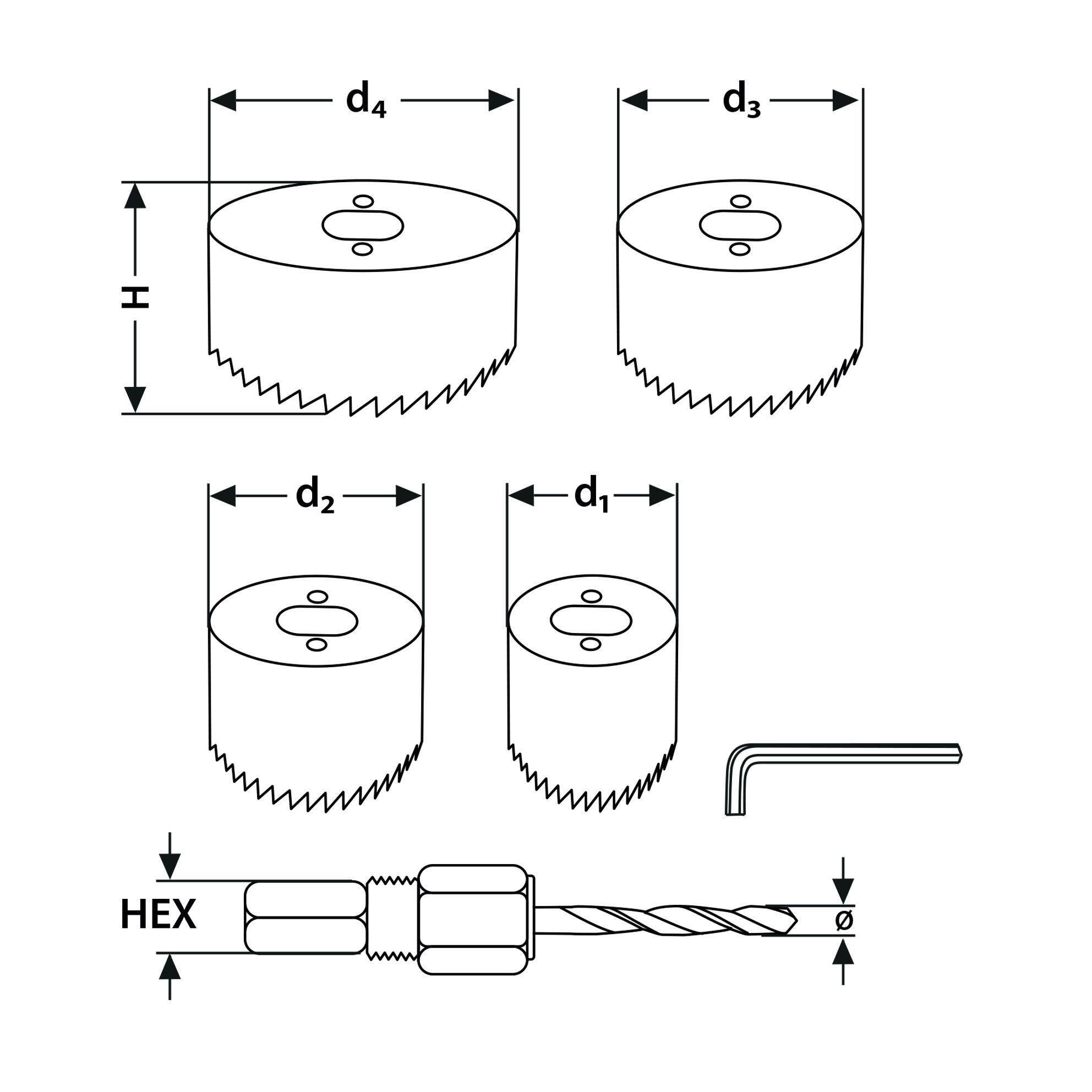 • Uniwersalność – zestaw zawiera kilka różnych rozmiarów otwornic, co czyni go bardzo uniwersalnym i pozwala na wiercenie otworów o różnych rozmiarach i w różnych materiałach.