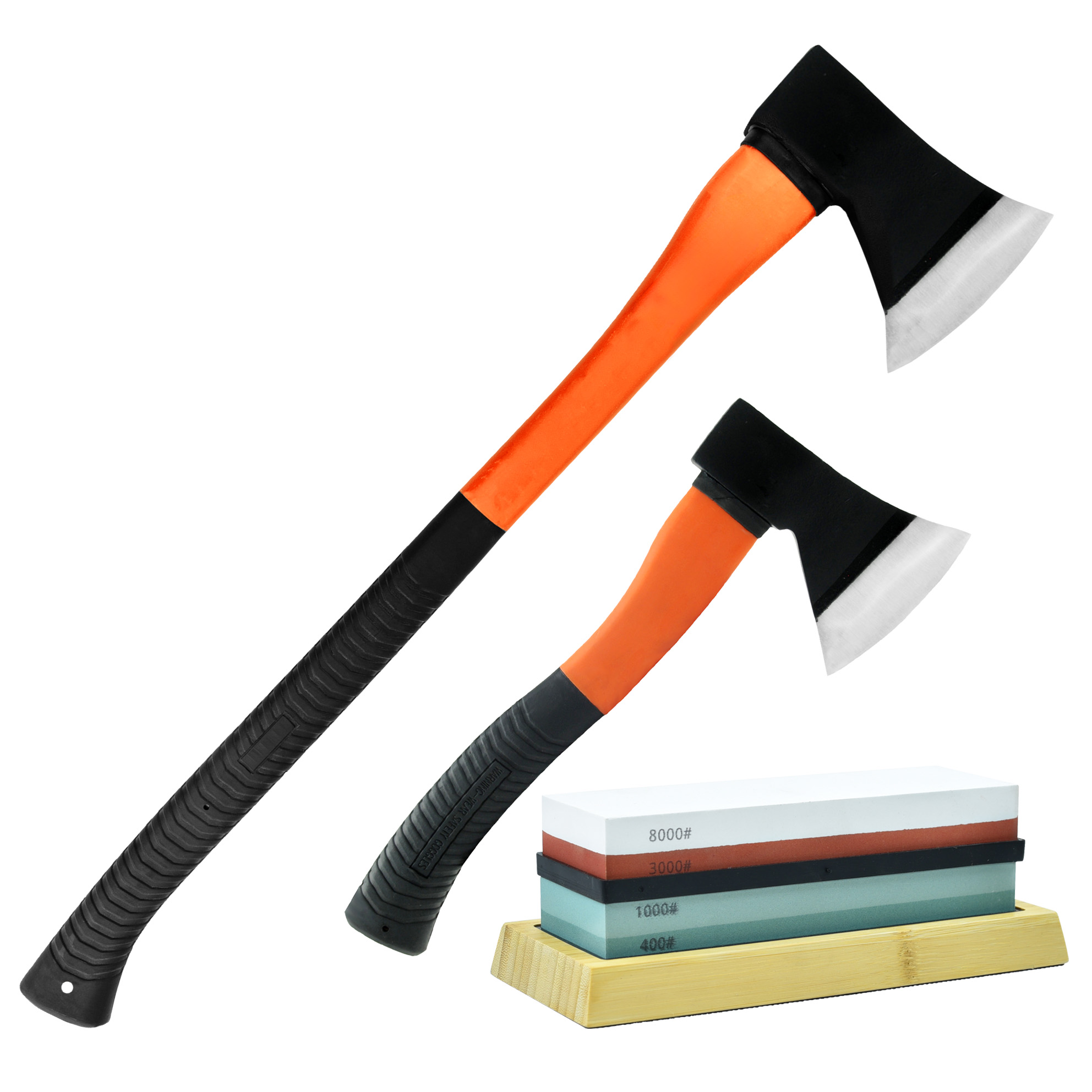 Wyjątkowo praktyczny zestaw narzędzi marki REXXER, w skład którego wchodzą dwie siekiery z wytrzymałym trzonkiem z włókna szklanego oraz elegancka, dwustronna ostrzałka wodna do noży i dłut. To kompletny zestaw zarówno do intensywnych prac terenowych, jak i precyzyjnego ostrzenia ostrzy.