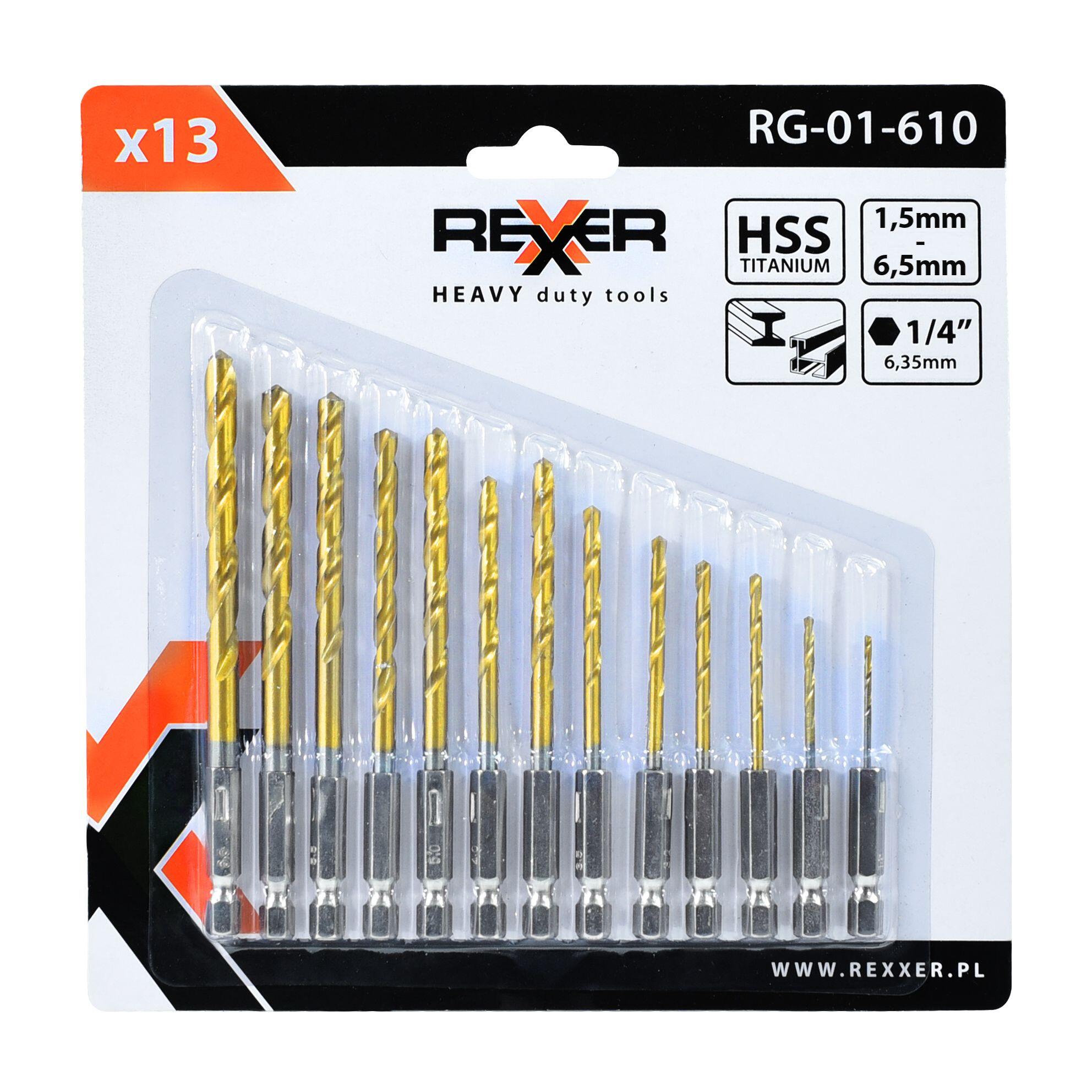 ZESTAW WIERTEŁ HSS-TiN 1,5-6,5 MM 13 SZTUK HEX 1/4″