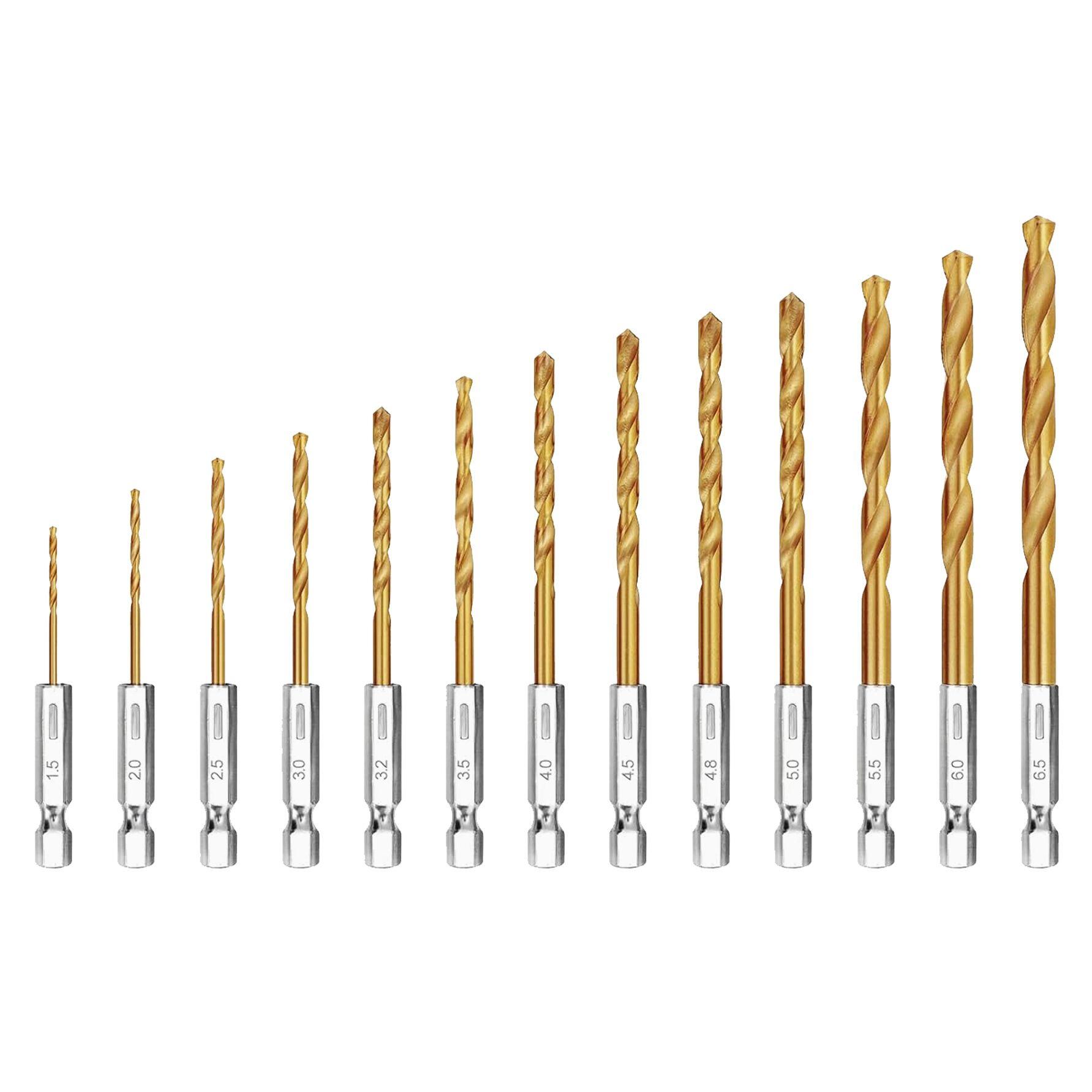 Zestaw wierteł HSS-TiN 1,5-6,5 mm (13 sztuk, uchwyt HEX 1/4″)